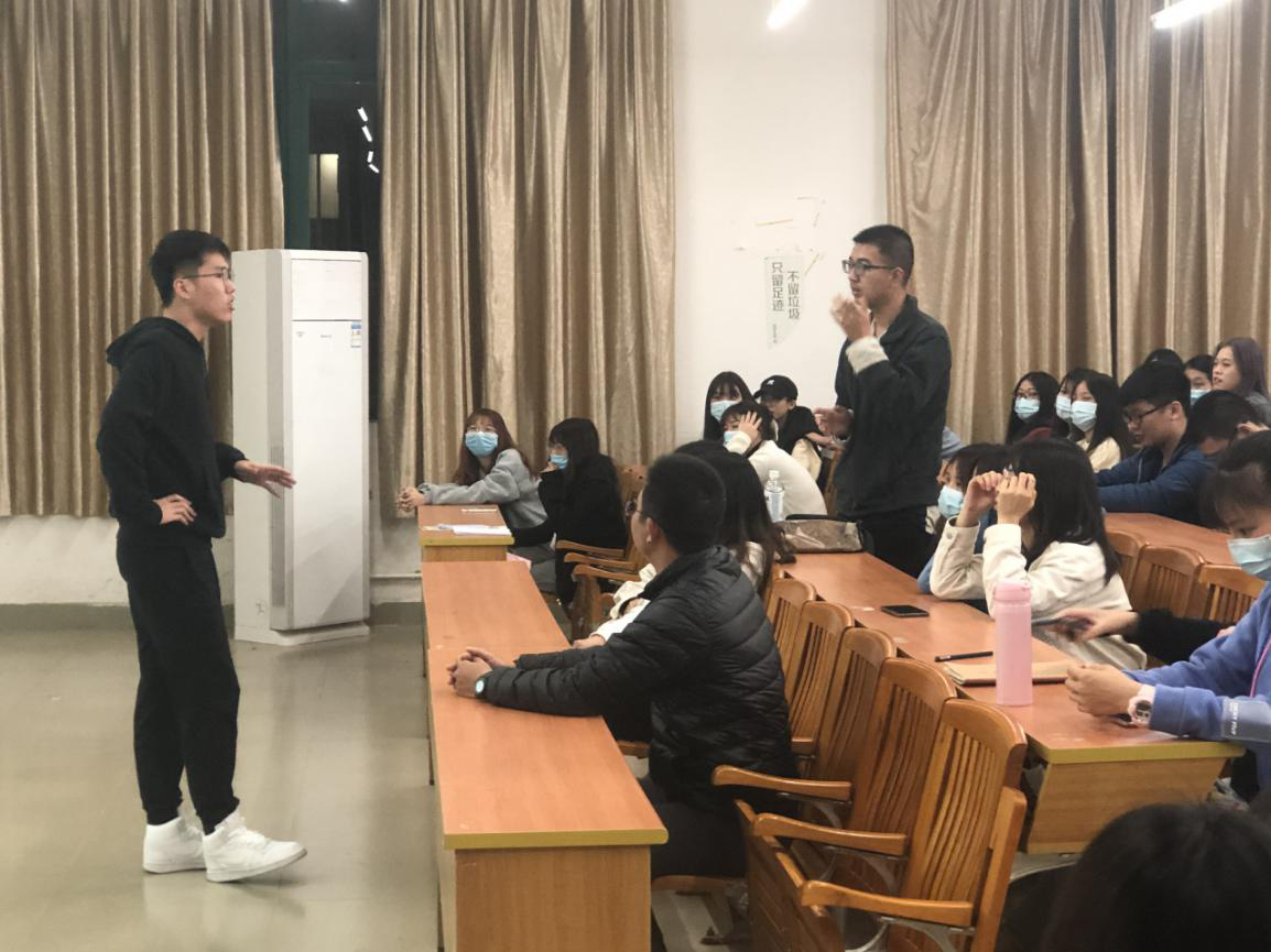 2020年12月8日晚上七点,在博学楼C501国际经济与贸易学院19级3、4、5班一起举行了有关四六级、插本学习的学风建设主题分享班会。到场嘉宾有校团委副书记谢锦权老师、国贸学院辅导员黄炬岱老师、余锋老师。