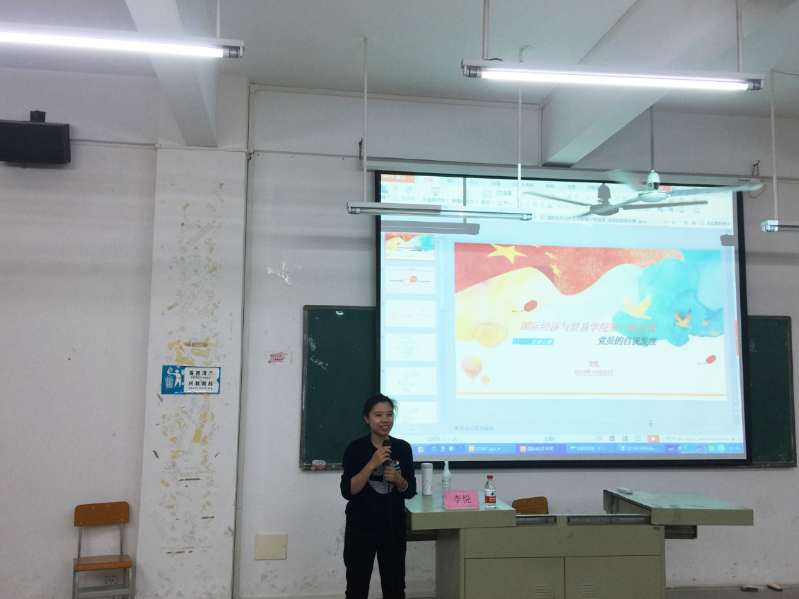 2019年10月26日,国贸学院在博学楼C501和C201分别开展了以“党员的发展程序”、“党员的自我发展”为主题的党章培训讲座,主讲人分别为国贸学院学生党支部胡秋敏书记、纪检委员李悦老师。培训对象为18级、19级向党组织递交入党申请书的同学。