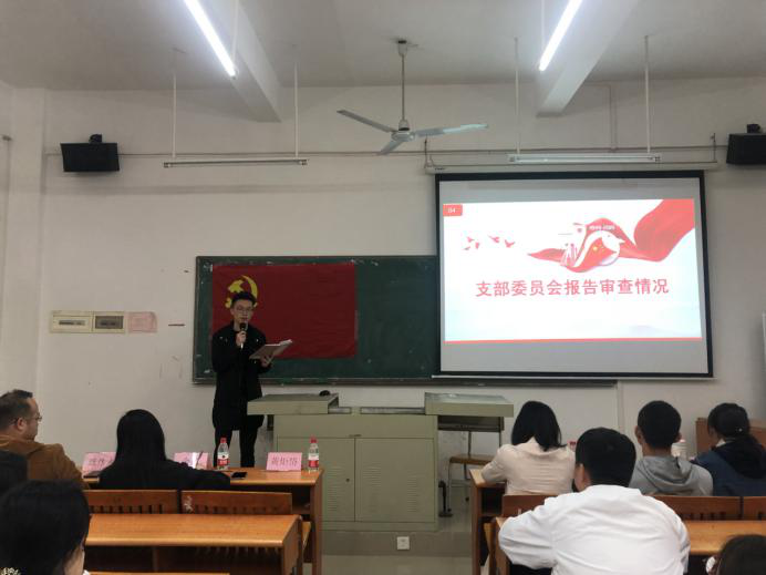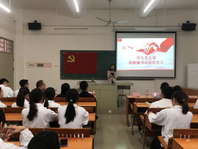在工作人员计票过程中,学生党支部胡秋敏书记为大会作总结发言,希望每一位党员要认真履行党员的义务、正确行使党员的权利,要以黄文秀等优秀党员为榜样,努力学习,奋发向上,时刻以合格党员的标准要求自己,坚守党员的初心和使命。