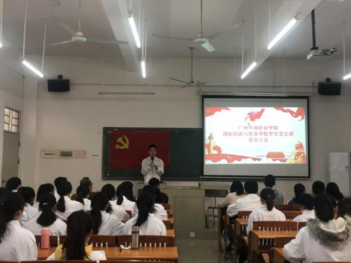 12月6日下午16:00,国际经济与贸易学院学生党支部党员大会在博学楼C205召开,出席本次大会的有学院学生党支部胡秋敏书记、教工党支部黄志辉书记、学生党支部黄炬岱副书记、纪检委员李悦同志、辅导员甄伟杰同志和余锋同志、教师党员杨思柳同志和高文静同志、全体学生党员以及2019年秋季下半学期发展对象。