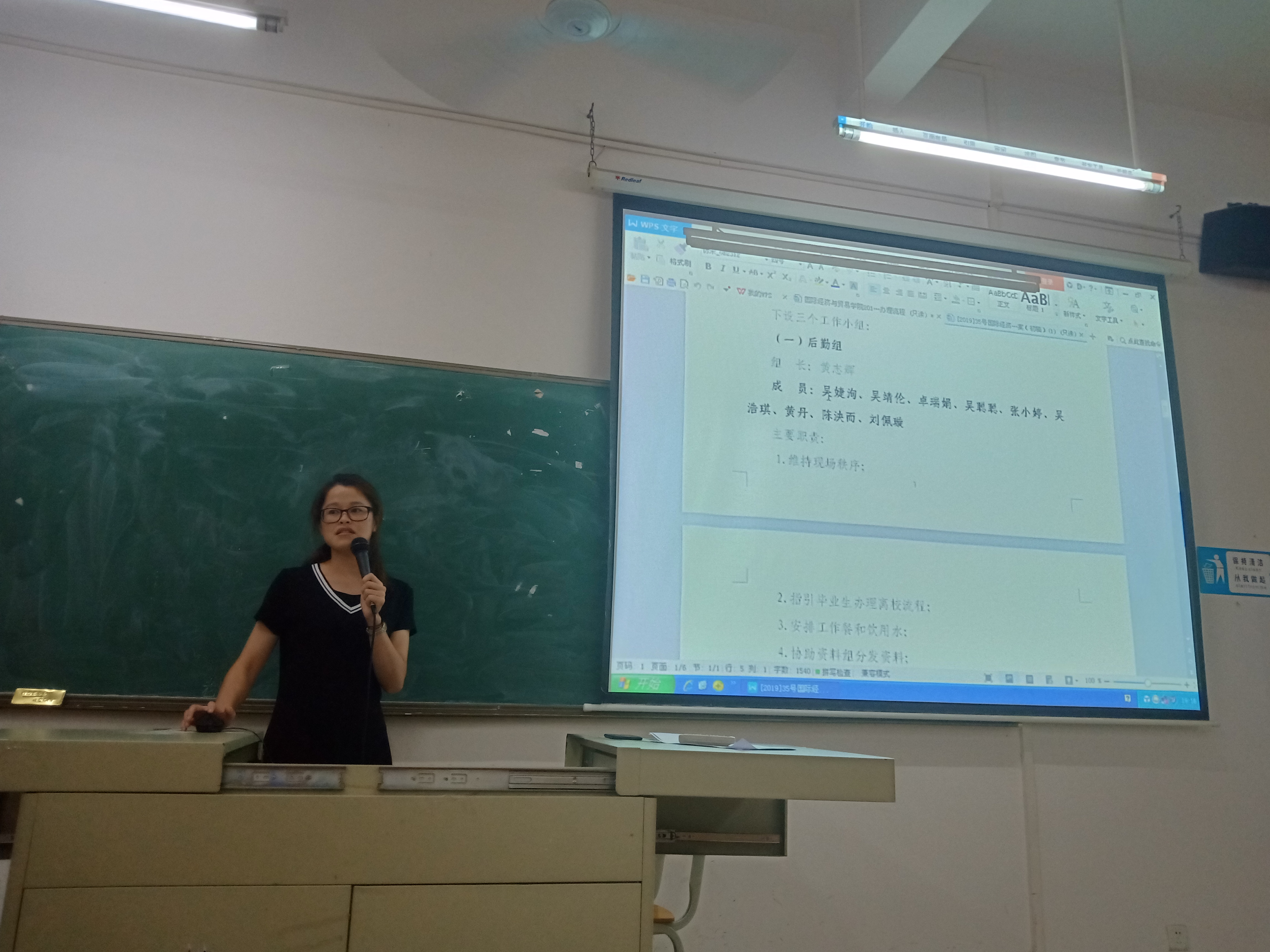 大会伊始,张玉玲老师向大家讲解了《国际经济与贸易学院2019届毕业生离校工作实施方案》的内容和介绍了毕业生离校流程以及三个工作小组的人员和职责。