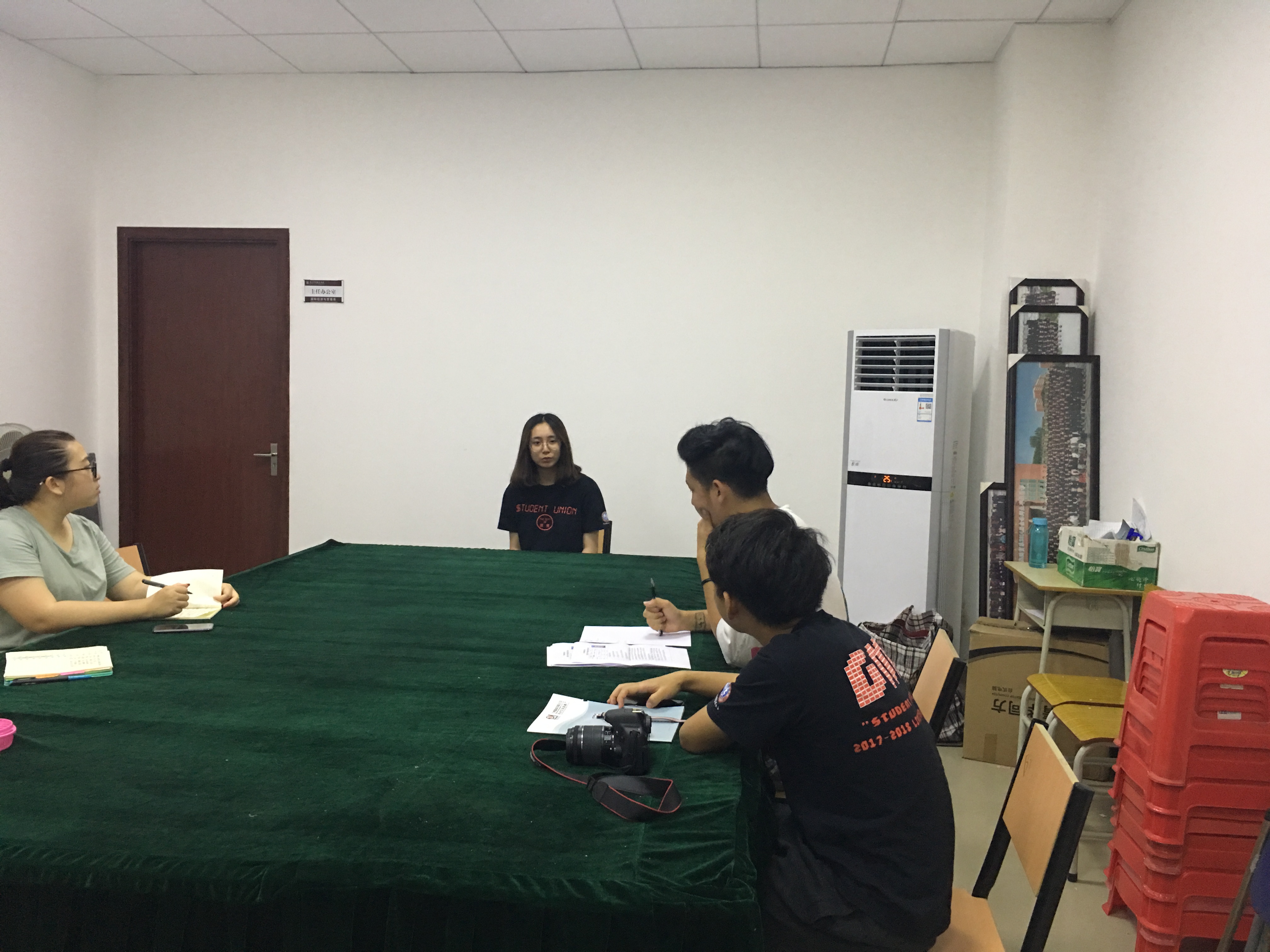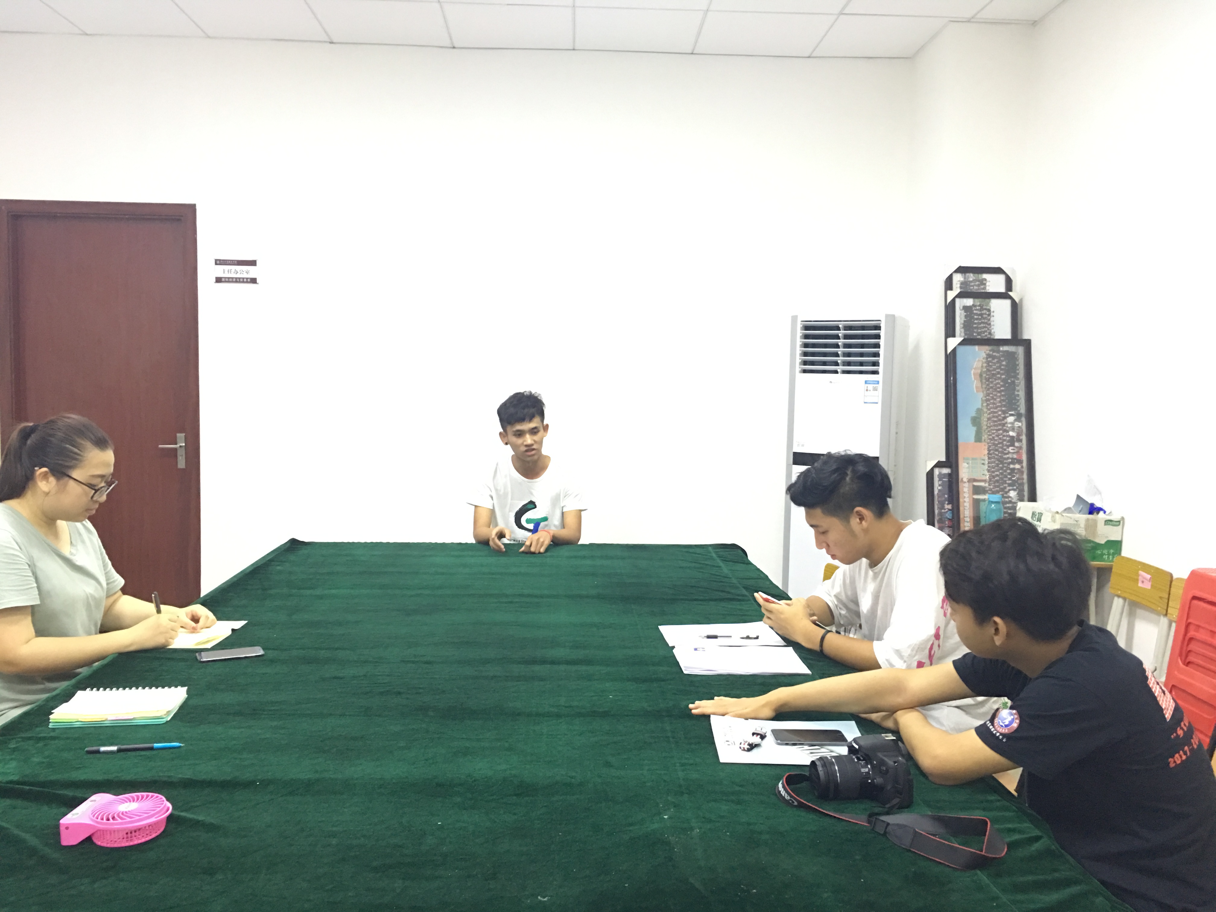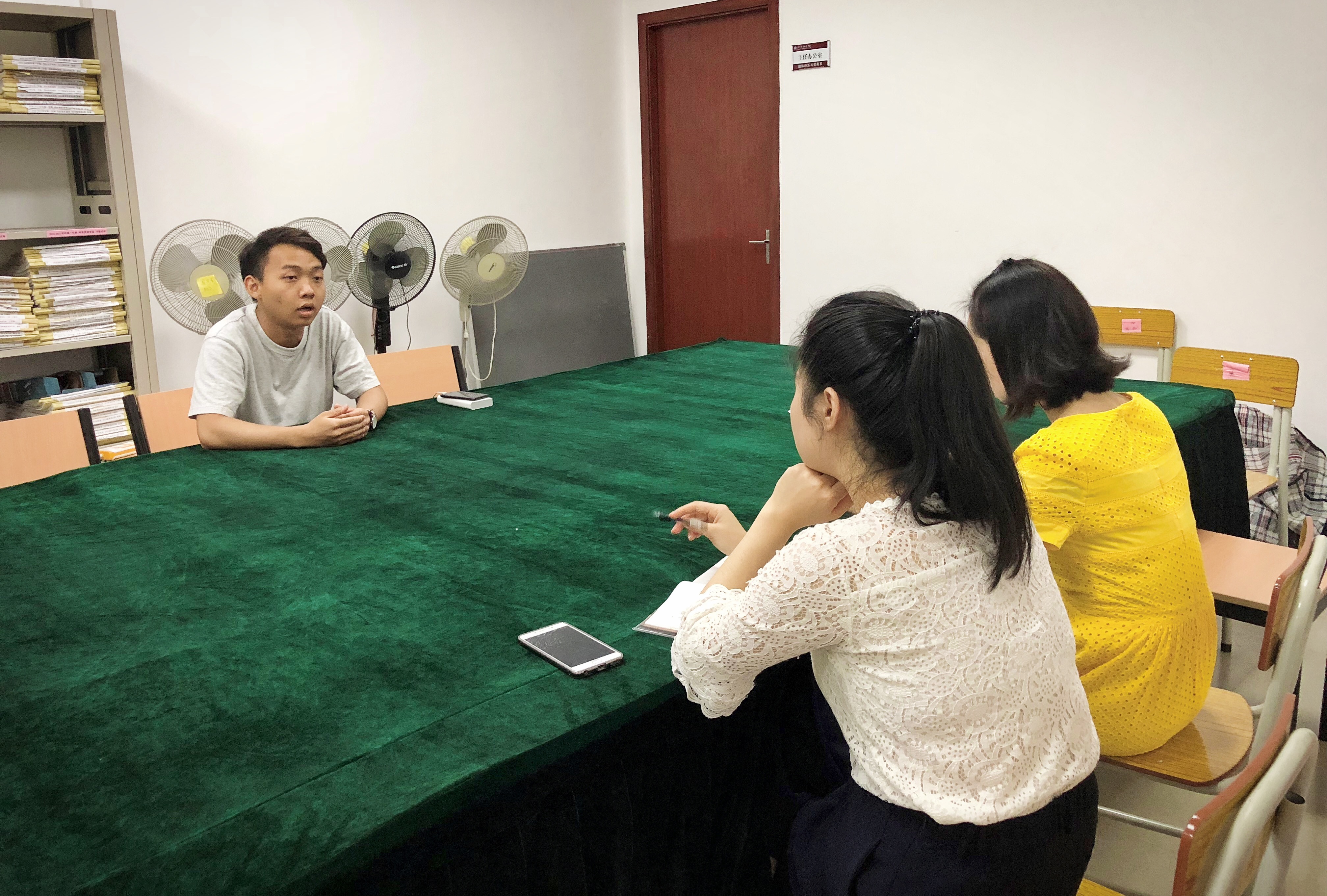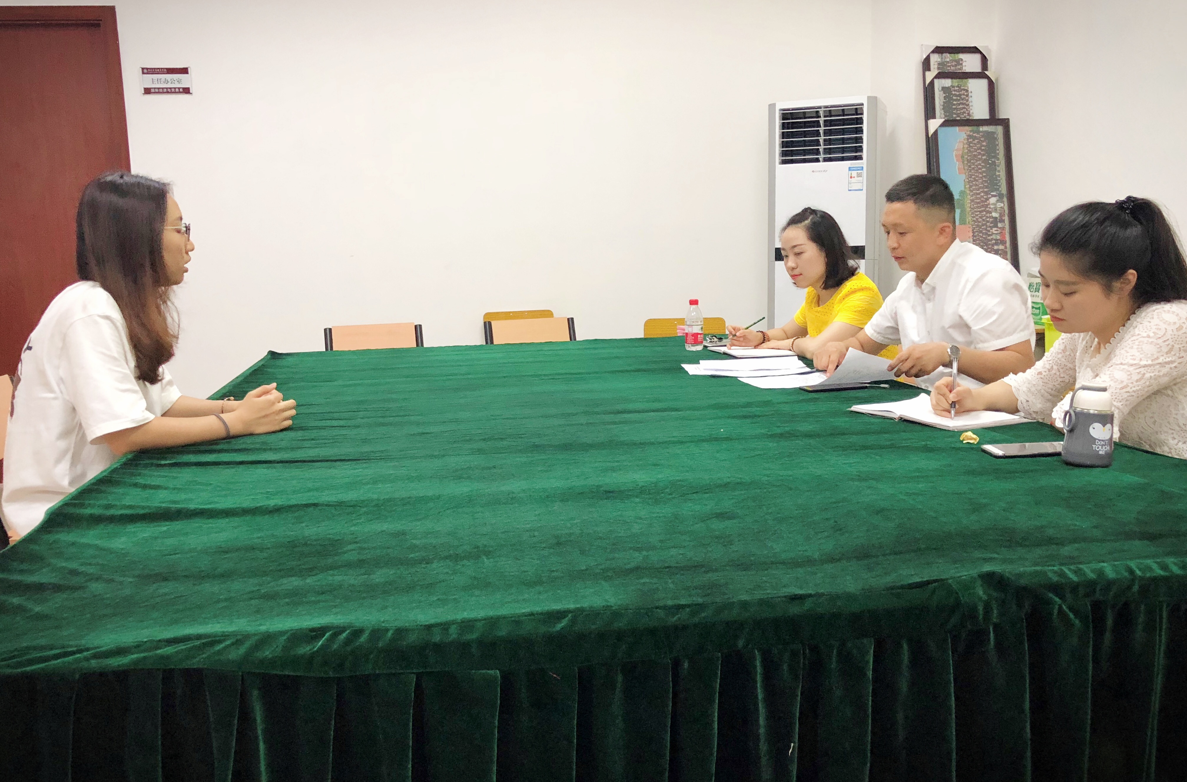 5月30、31两天,我系18级新生班助面试在博学楼B407国贸系会议室举行。本次面试由四位18届总班助担任评委对新生班助候选人进行考核。面试中总班助们针对新生班助的相关工作提出了不同的问题,观察每位面试同学的准备是否充分,对班助这个工作是否有了解。同时也提出不同的场景下的案例,考验他们的临场发挥,以及对于突发情况的处理方式,大部分前来面试的同学也都对提出的问题对答如流,思路清晰,态度严谨。18届总班助们根据面试者的发挥进行讨论,严格筛选,保证选出来的候选人都有一定的能力能胜任新生班助这个职位。