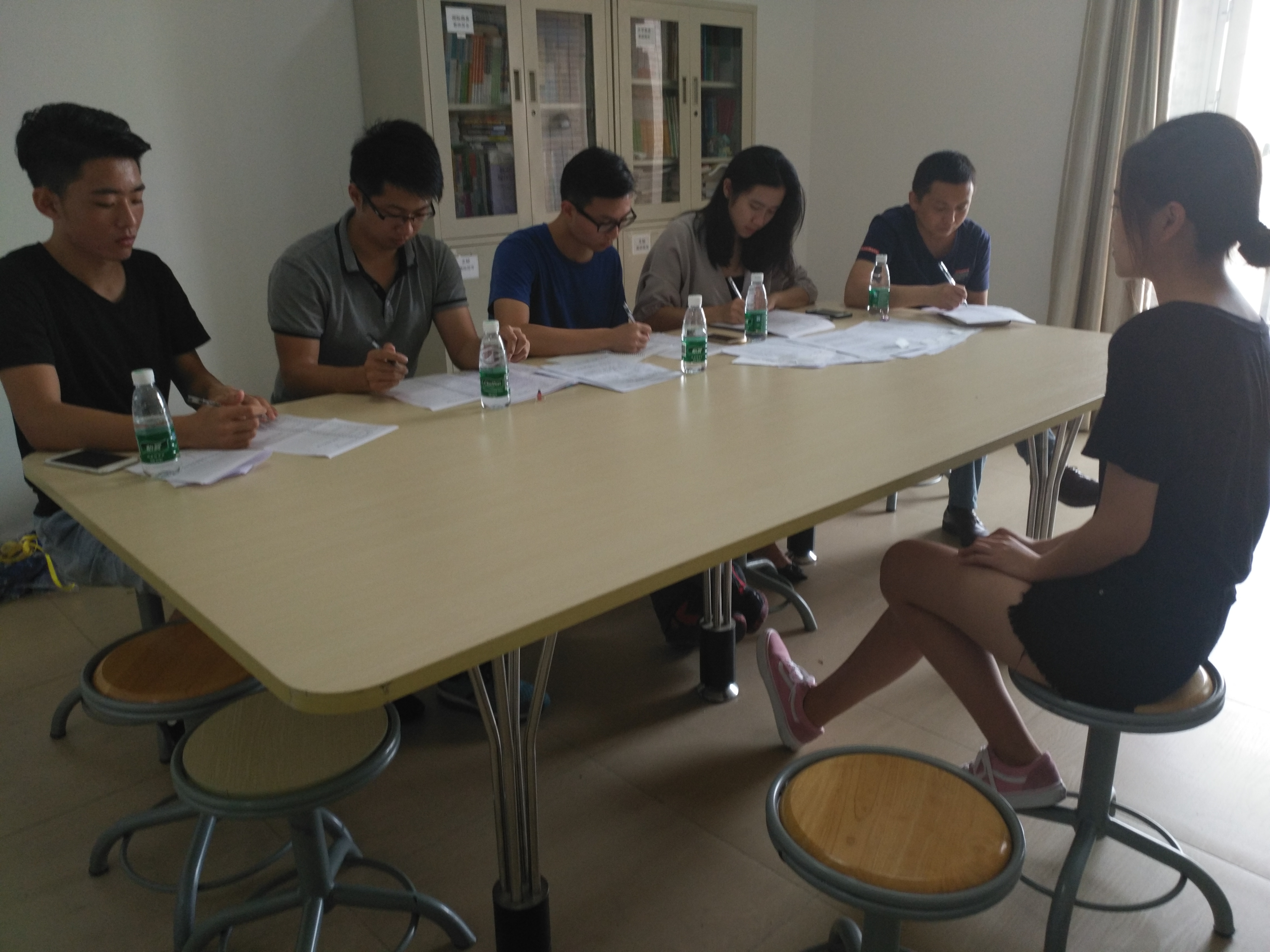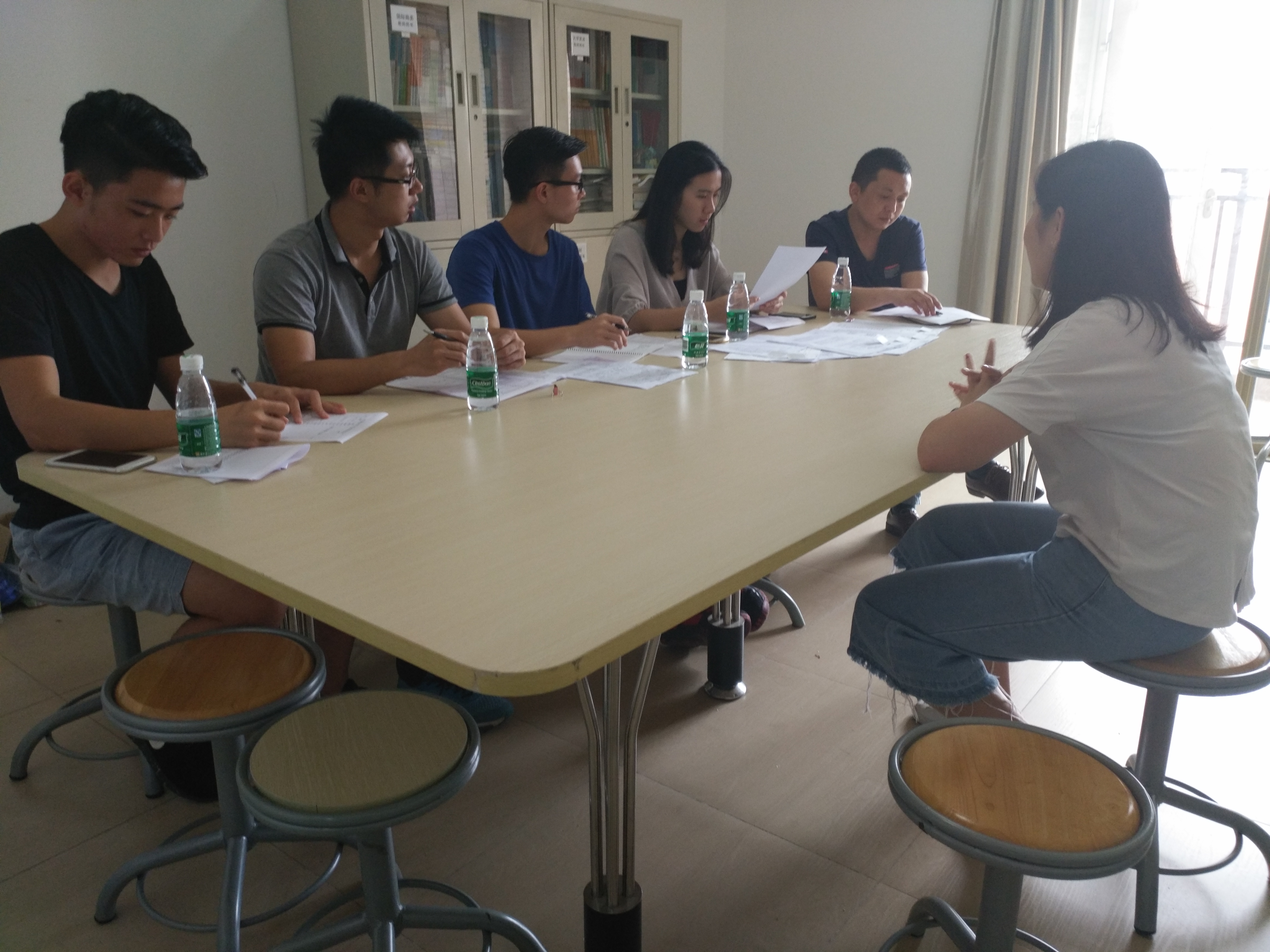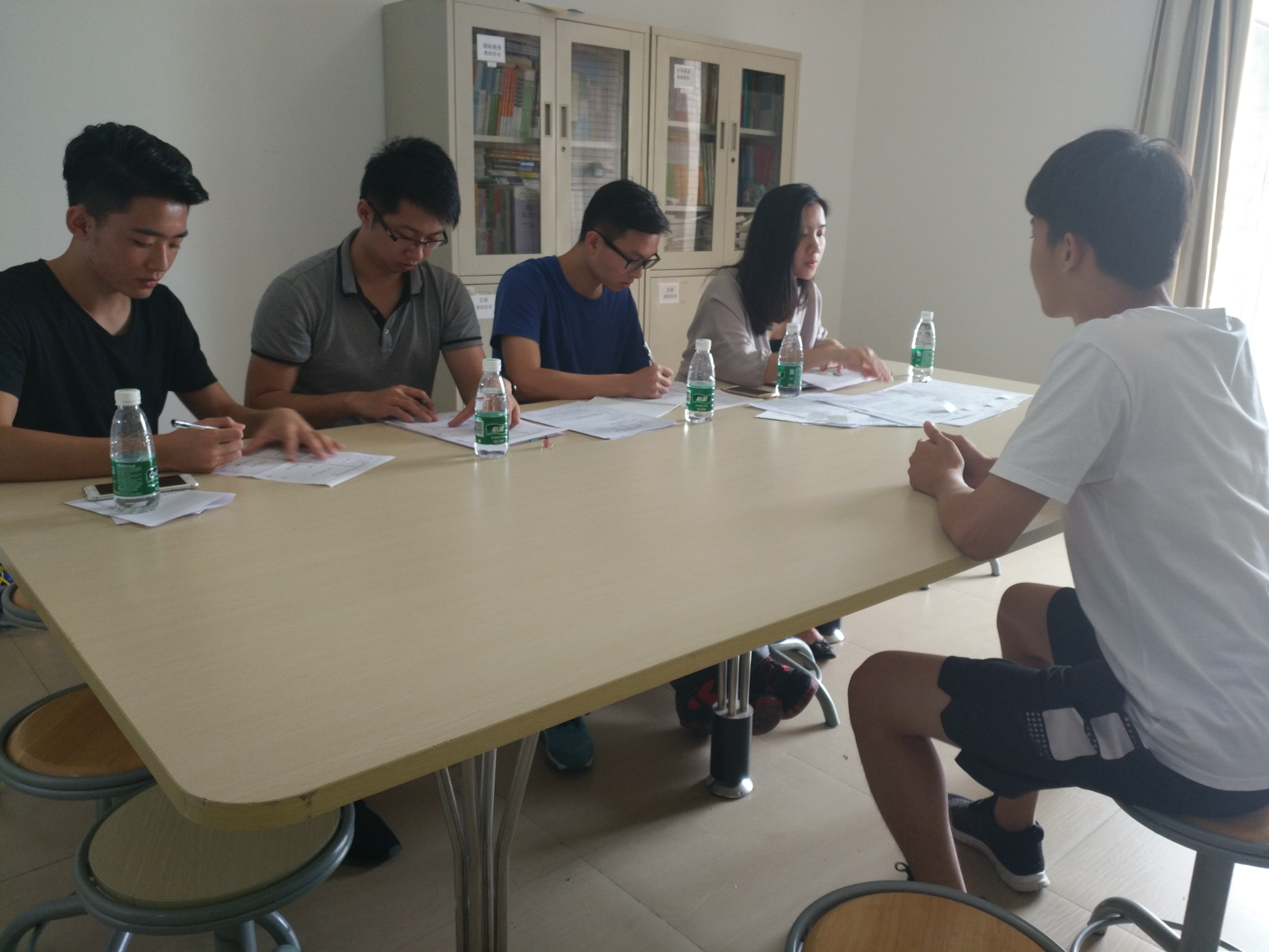 2017年6月1日和2日,我系在崇贤楼824举行17级新生班助面试。本次面试的评委由我系学工助理孔凡龙、辅导员老师余泳及17级总班助曾晓斌、林婉、陈杰鑫担任。