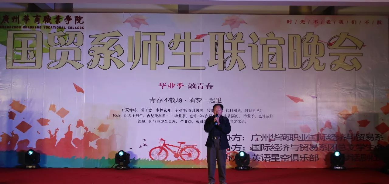 2017年12月12日晚7点,我系第二届师生联谊晚会在启智楼一楼大厅隆重举行。莅临现场的领导嘉宾有:院党委书记黄桂标、国贸系主任祁建、国贸系副主任沙园松、国贸系副主任张丽菠、国贸系学工副主任孔凡龙以及各系学工负责人、各系团总支书记、各系辅导员老师等。还有来自东莞工贸会26营的企业代表:东莞市亚中粤商贸有限公司范桂政总经理、东莞市德玛体育用品有限公司刘正宇总经理、东莞市迈凯进出口贸易有限公司赖聪总经理、外贸业务员Vicky、东莞市伊娃科技有限公司吴京昆总经理、东莞市六月之家居家用品有限公司张敏总经理、东莞市瑞祥精密硅胶制品有限公司梁志军总经理。