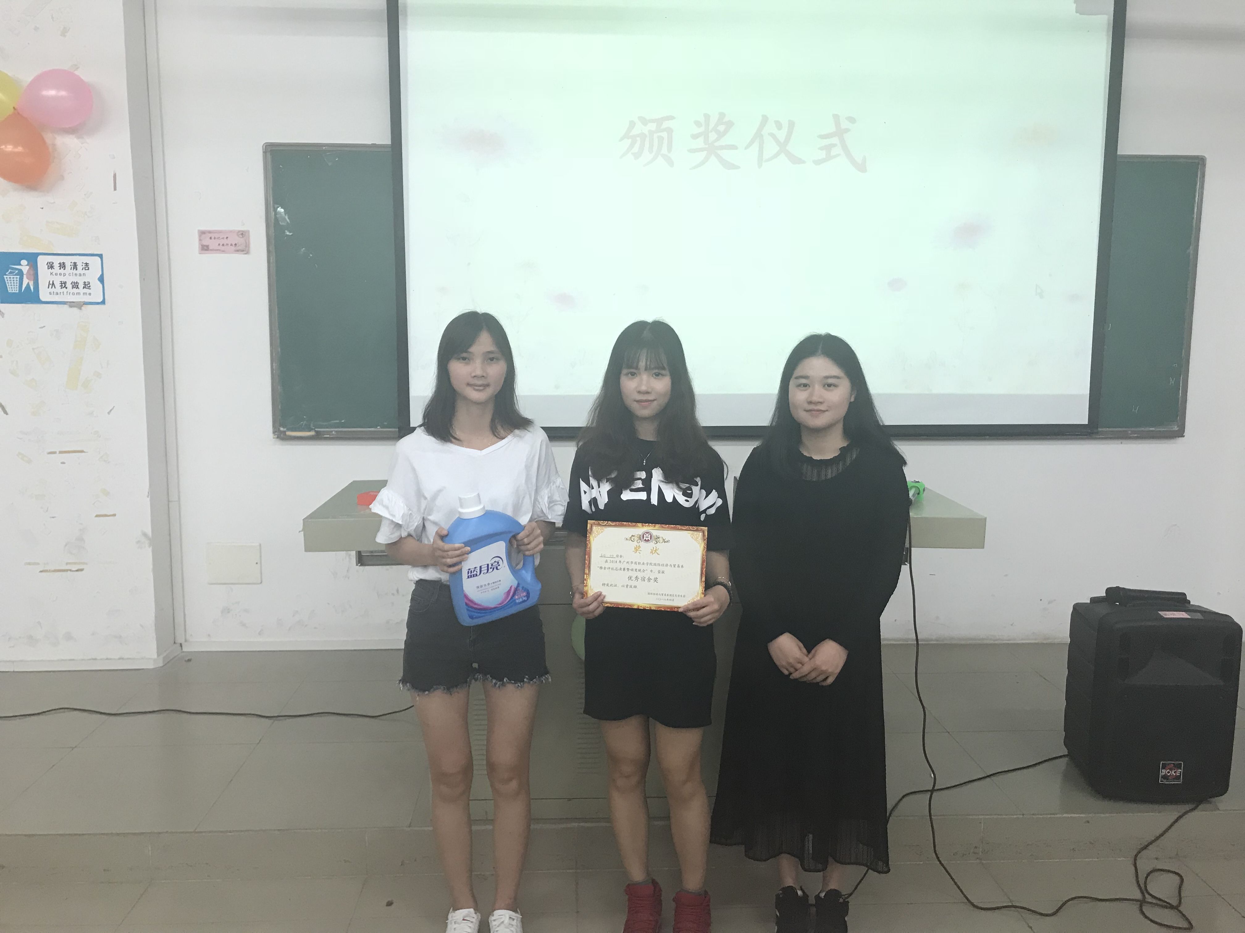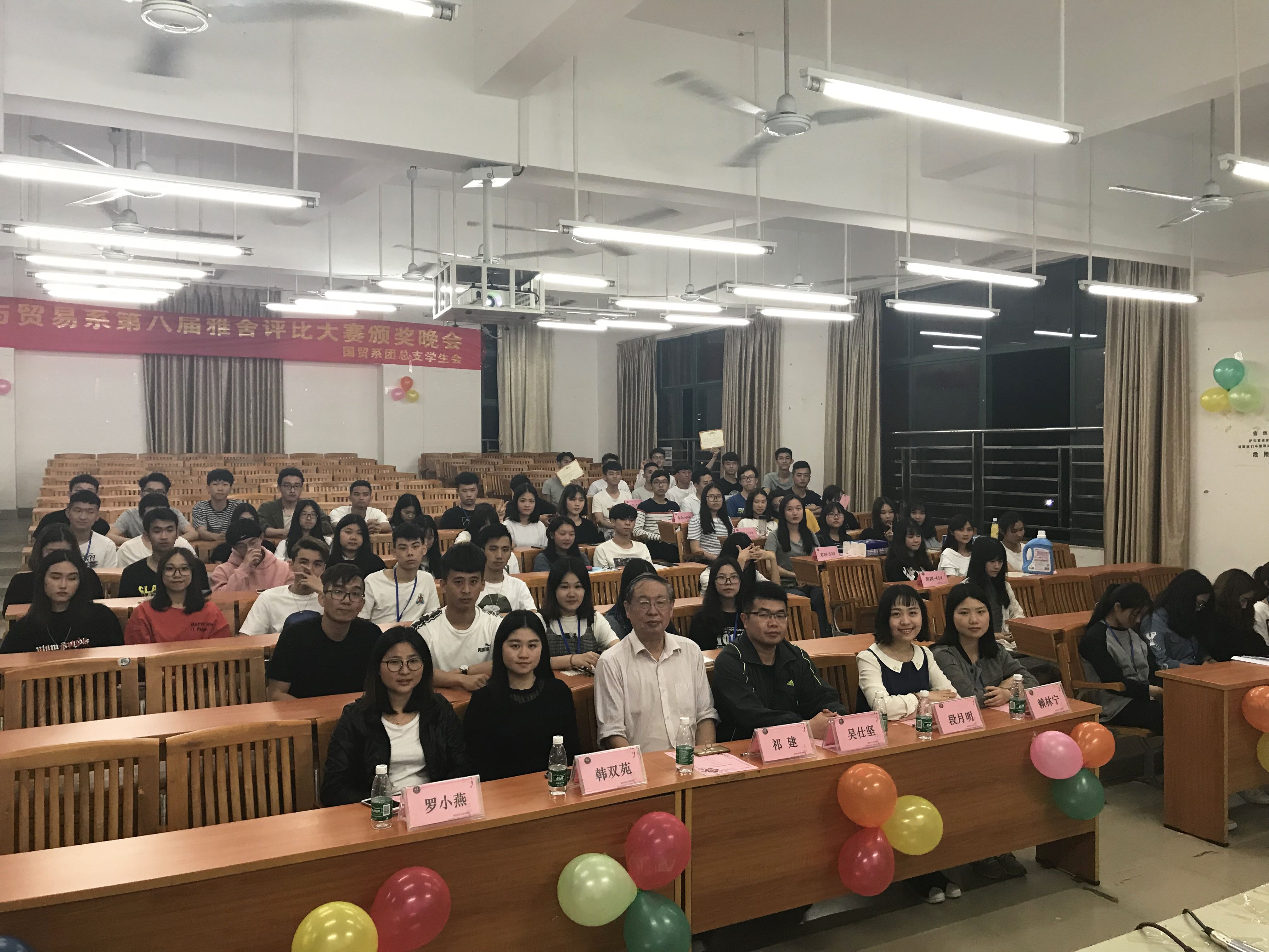 2018年4月11日晚7时,我系在广州华商职业学院博学楼C201举办了“第八届雅舍评比大赛暨颁奖晚会”。出席本次大会的来宾分别是:国贸系祁建主任、国贸系团总支书记吴仕坚老师、国贸系辅导员段月明老师、韩双苑老师、赖林宁老师、金融系罗小燕老师以及成功进入决赛的雅舍成员。