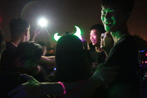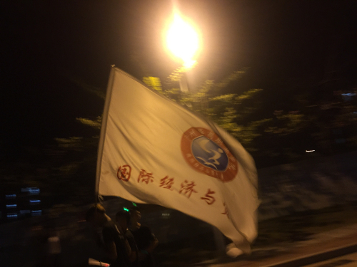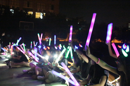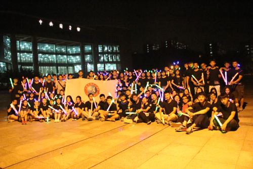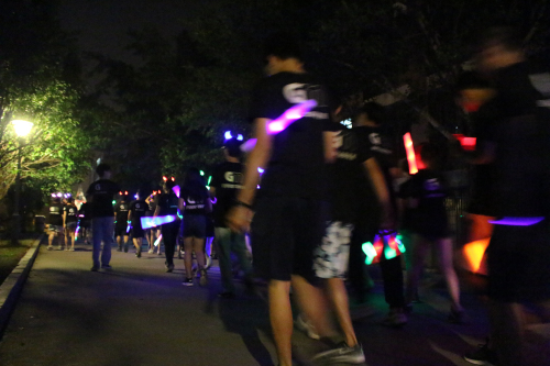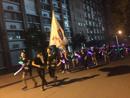 晚上6点50分,我系学生会成员按时到达指定地点集合并领取荧光棒,荧光手环等物资。准备就绪后,夜跑在大家的欢呼声中开始。青春的气息充满整个校道,一阵高过一阵的口号声引得路上同学纷纷驻足观看、拍手叫好。夜跑结束后,我们聚集在创新楼前篮球场进行游戏环节。紧张而有趣的“暴徒阿伯”游戏不仅考验学生的团结,还考验学生的计算能力;力量与智慧共存才能获胜的“推手”游戏更是引得同学们欢笑不断。有趣的游戏结束后我系学生合唱“小幸运”,“荧光夜跑”活动圆满结束。