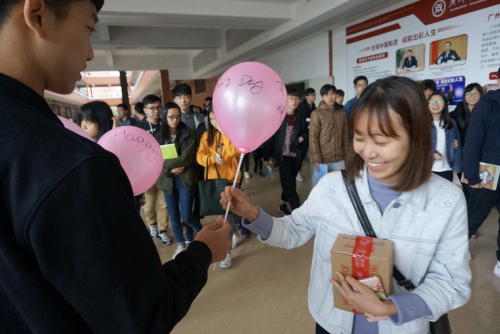 本届我系女生节系列活动有“你的愿望我来实现”、“后宫佳丽”、“only for you”等活动,奖品丰富多彩,吸引了众多女生踊跃参与。我系学生会在3月7日当天为校园内的女生们送上五颜六色的气球和温暖祝福,收到祝福的女生们都纷纷露出开心的笑容成为一道明媚的风景线。