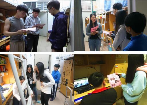 2017年3月15日晚9点整,国贸系学生会的工作人员们组成三组小分队,对学院内报名“雅舍评比大赛”的参赛者宿舍进行突击检查,并分发评分单。