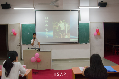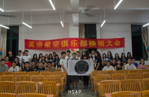 新学期,新面貌。2016年9月12号晚上七点,英语星空俱乐部换届大会在博A207召开。社团指导老师罗小燕以及14级、15级的各社团代表和英协的全体干事出席本次大会。 首先,我们通过视频一起回顾了2015-2016学年在英协这个大家庭中发生的点点滴滴;接着,14级的会长谢文超以及15级新任会长赖薇进行发言,言语中有祝福有表态更有信心;还有紧接而至的游戏环节“你比划我来猜”,参加游戏的成员的表现更是让观众们捧腹大笑,一首“隐形的翅膀”更是很好地活跃了气氛。而后,14级老干部群与15级新干部群进行正式交接,意味新的起步;从14级手中接过英协的大旗,我们15级的干部都很有信心,更有决心想要把英语星空俱乐部这个协会发扬得更好,让更多的人了解和关注英协这个充满爱的大家庭。也许我们在这个过程中会有美中不足的地方,但是我们会尽力地去做好每一件事。最后,指导老师进行发言:感谢曾经那么努力付出的14级老干部,也期待15级新干部的能量爆发和创新,并祝愿协会越来越好。