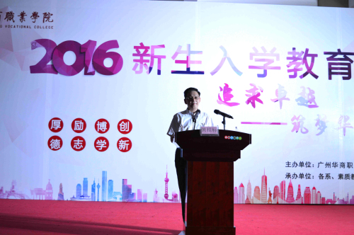 在纪念“9.18”这样一个特殊的日子里,院党委书记黄桂标为2016级新生作“追求卓越,筑梦华商”的报告。他谈及中国梦与读书梦,希望新生能够一往直前;提出四个学会:学会做人,学会做事,学会学习,学会合作。期间,播放我院宣传片向同学们展示校园不一样的风采。黄书记的报告旁征博引,提纲挈领,风趣幽默,现场不时发出阵阵掌声。