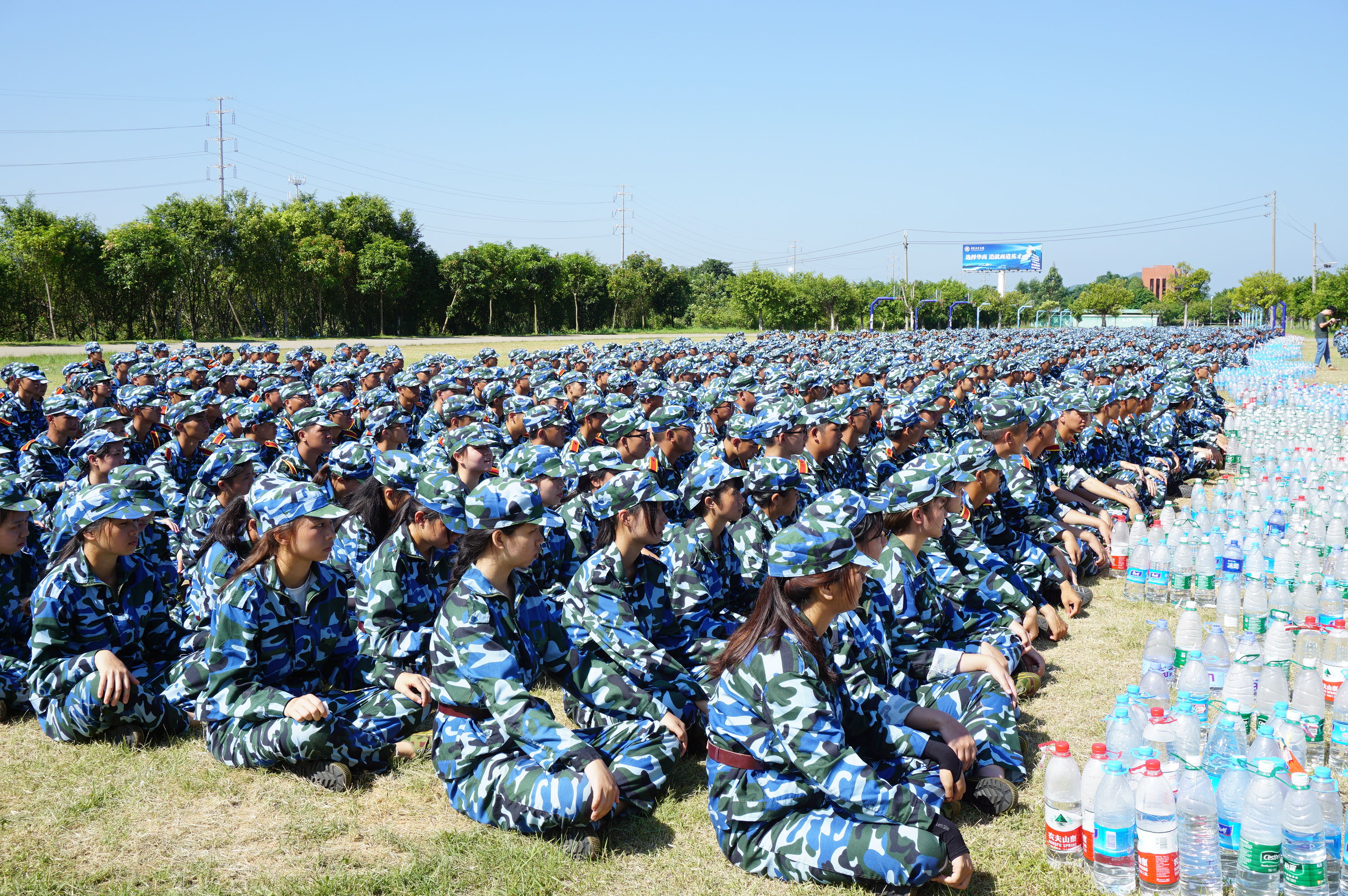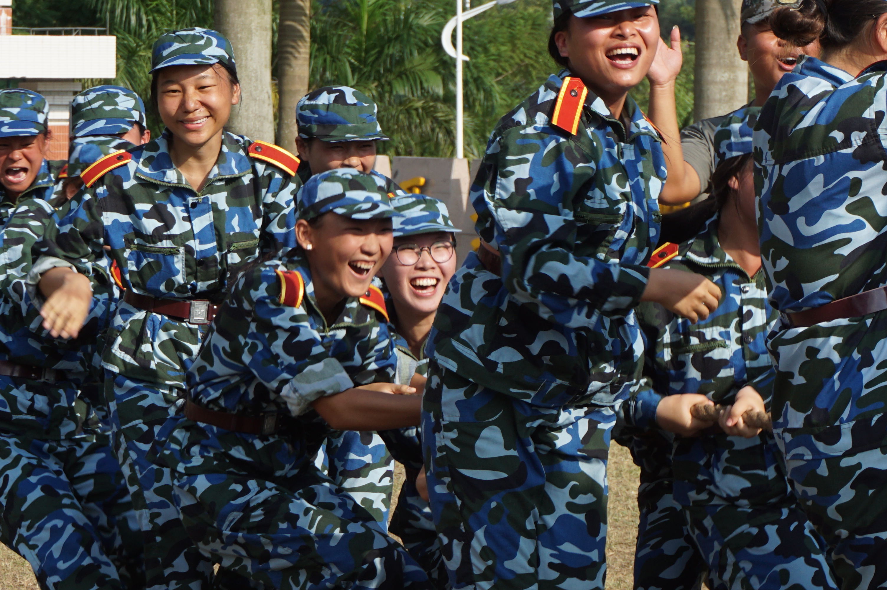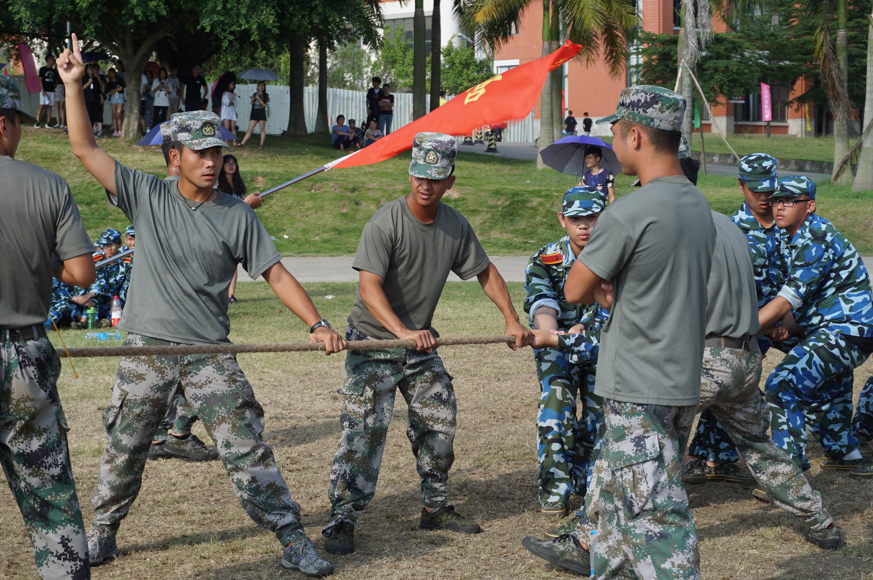 2016年9月18日下午,2016级新生迎来了军训中的另外一项挑战-拔河比赛。共同集中在操场上,太阳热情如火,而同学们也兴致很高。在各营教官的带领下,同学们井然有序地参赛。他们都十分激动,使出自己最大的力气,发挥出最好的状态。场下的同学也都为自己的小伙伴们加油打气,那和谐的场面让人觉得很美好。
