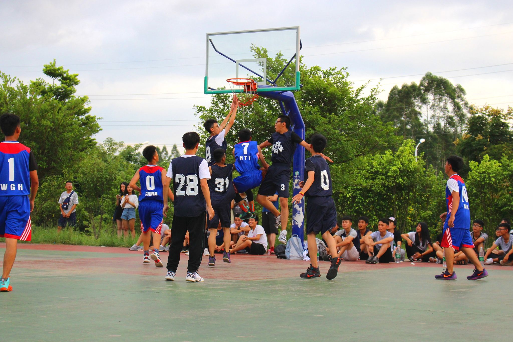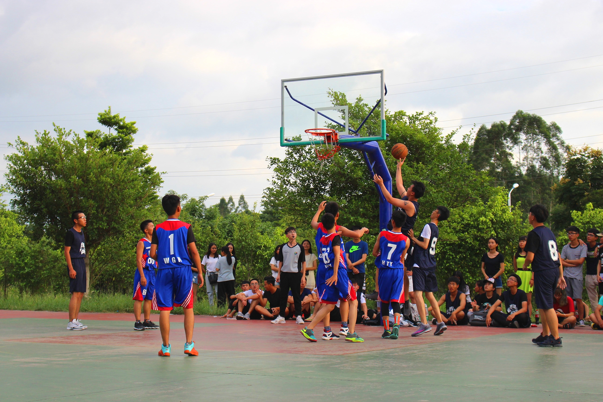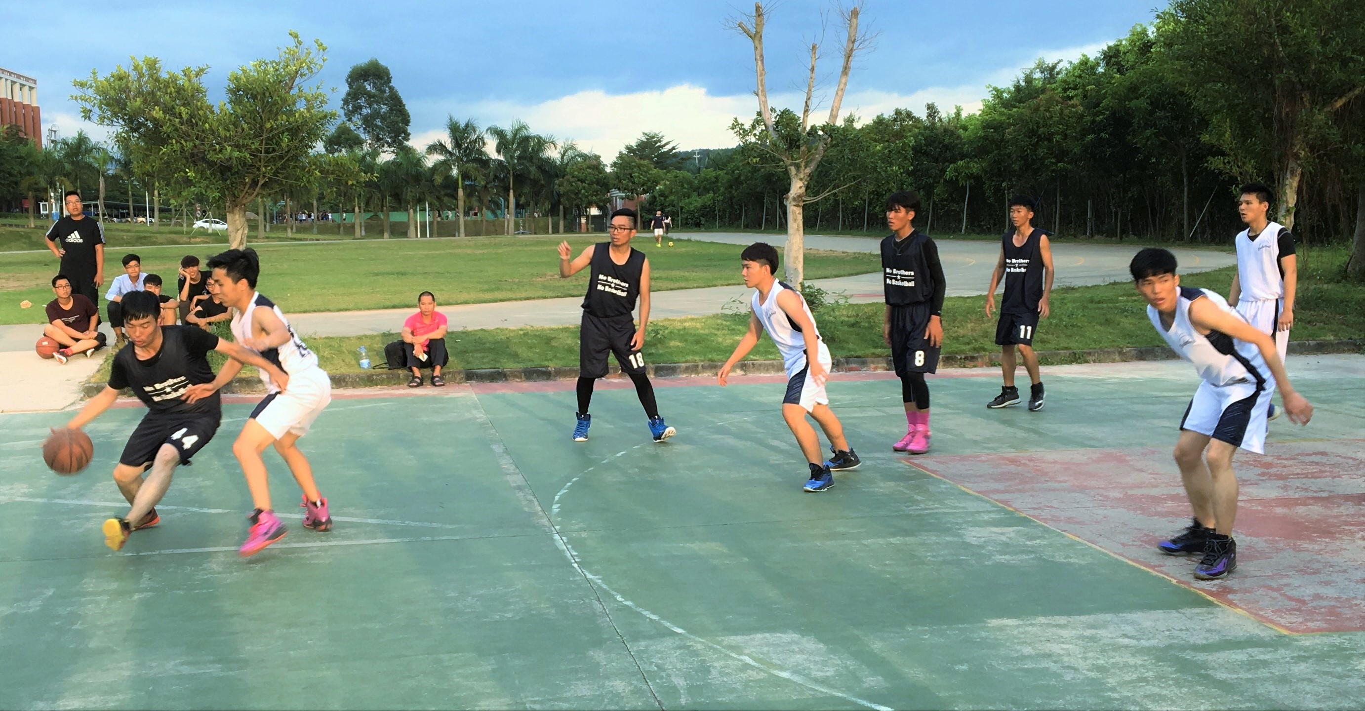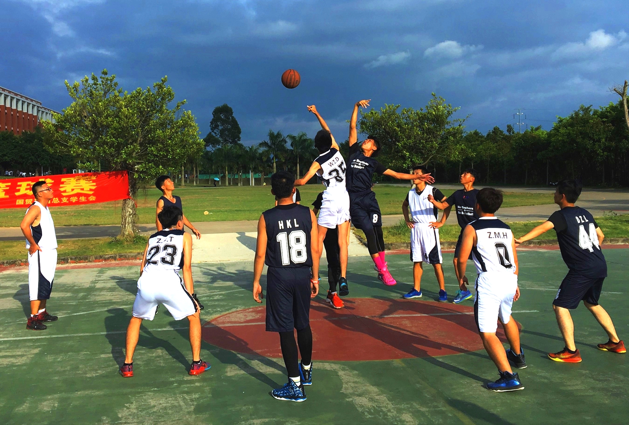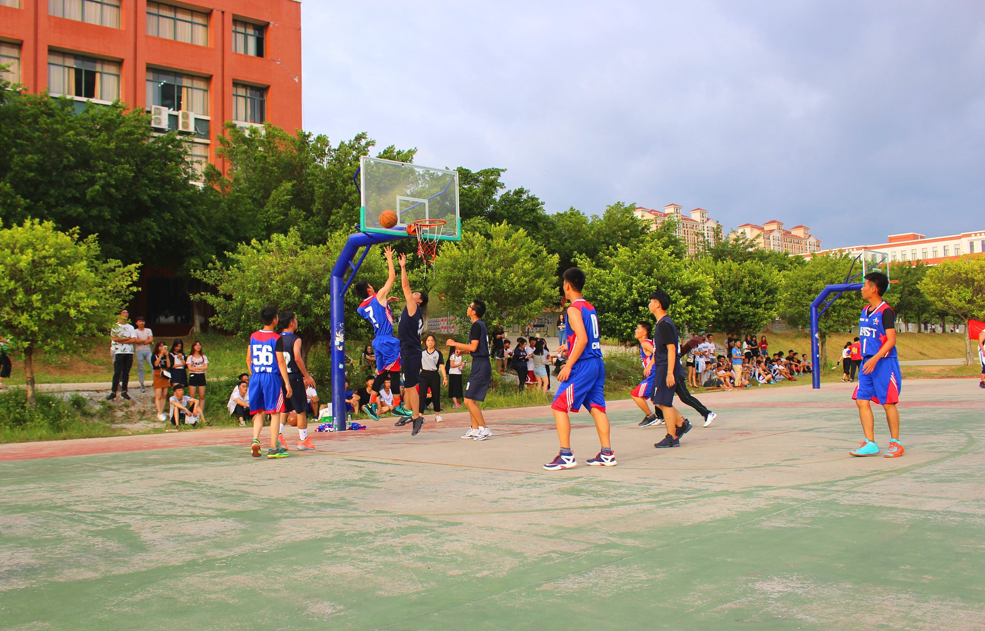 2016年10月8日下午4点30分,我系举行的新生杯篮球赛在创新楼前的篮球场正式开打。首场比赛双方分别是16级电商3班vs16级电商2班,16级金管2班vs16级电商4班。