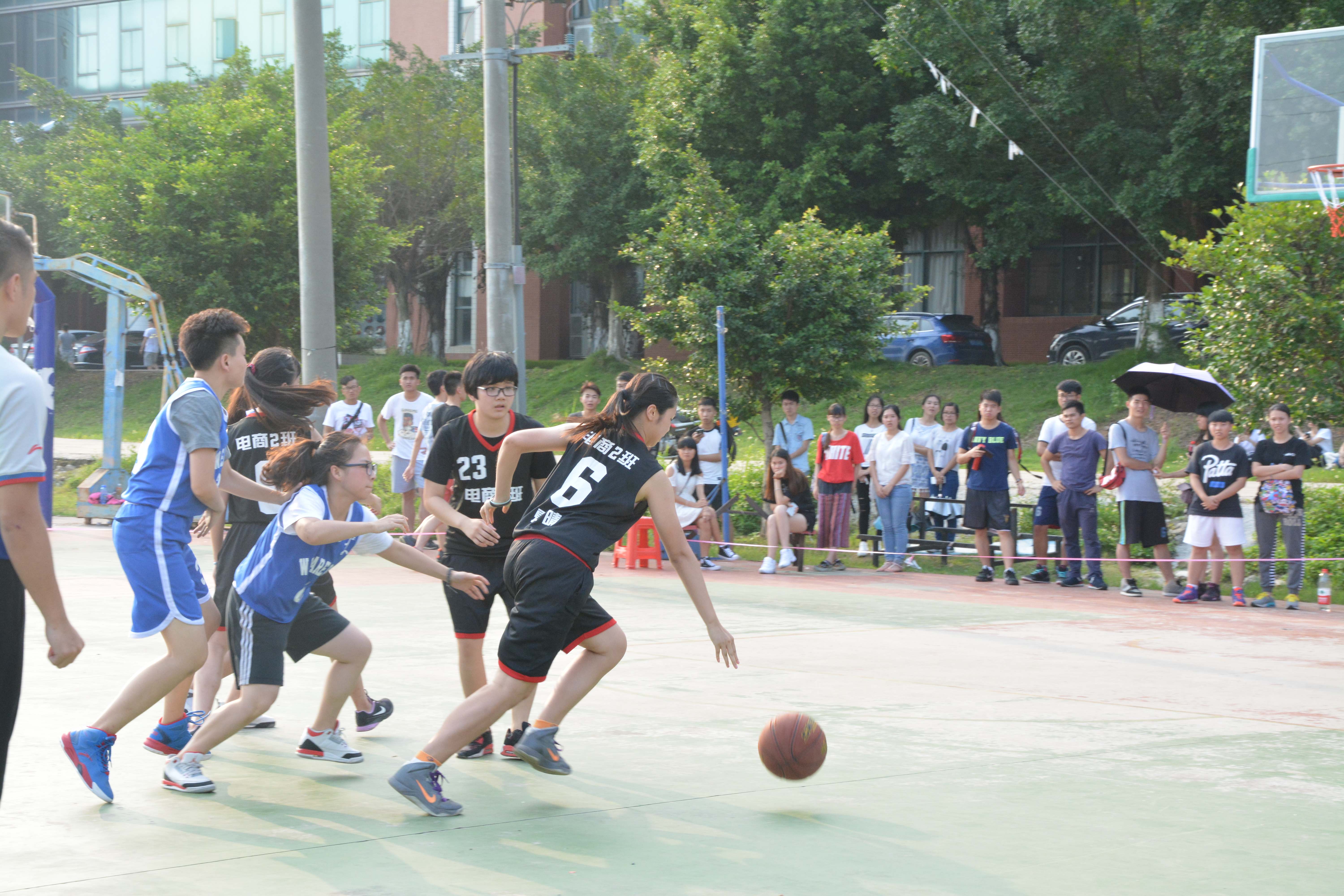 在热血的出场音乐和激情的球员介绍声中,双方队员依次进场。比赛正式开始,双方球员很快进入状态。球员们找寻自己的节奏,跑位空切一传一切串起了进攻。毒辣的太阳加上高强度的对抗,加大了争夺难度。但勇士们一直在坚持。女子赛的对抗亦是一个绝大的亮点,15电商2班的6号女魔头夏晴,有着绝对的身体优势和过硬的个人技术的她,一次次上篮一次次抢断,把14国商1班的城墙一锤锤摧毁,引起场上观众阵阵欢呼声。这是一场持久战,体力与心态同为重要。两队比分你追我赶,比赛难分胜负,常规时间里无法决出胜负双方进入加时赛。炎热的天气与持久地奋战消耗了运动员们的精力,多位队员抽筋下场。最终,15电商2班以1分的优势赢下了这场最强战!两队健儿都是英雄,坚持不放弃,团结不分散。
