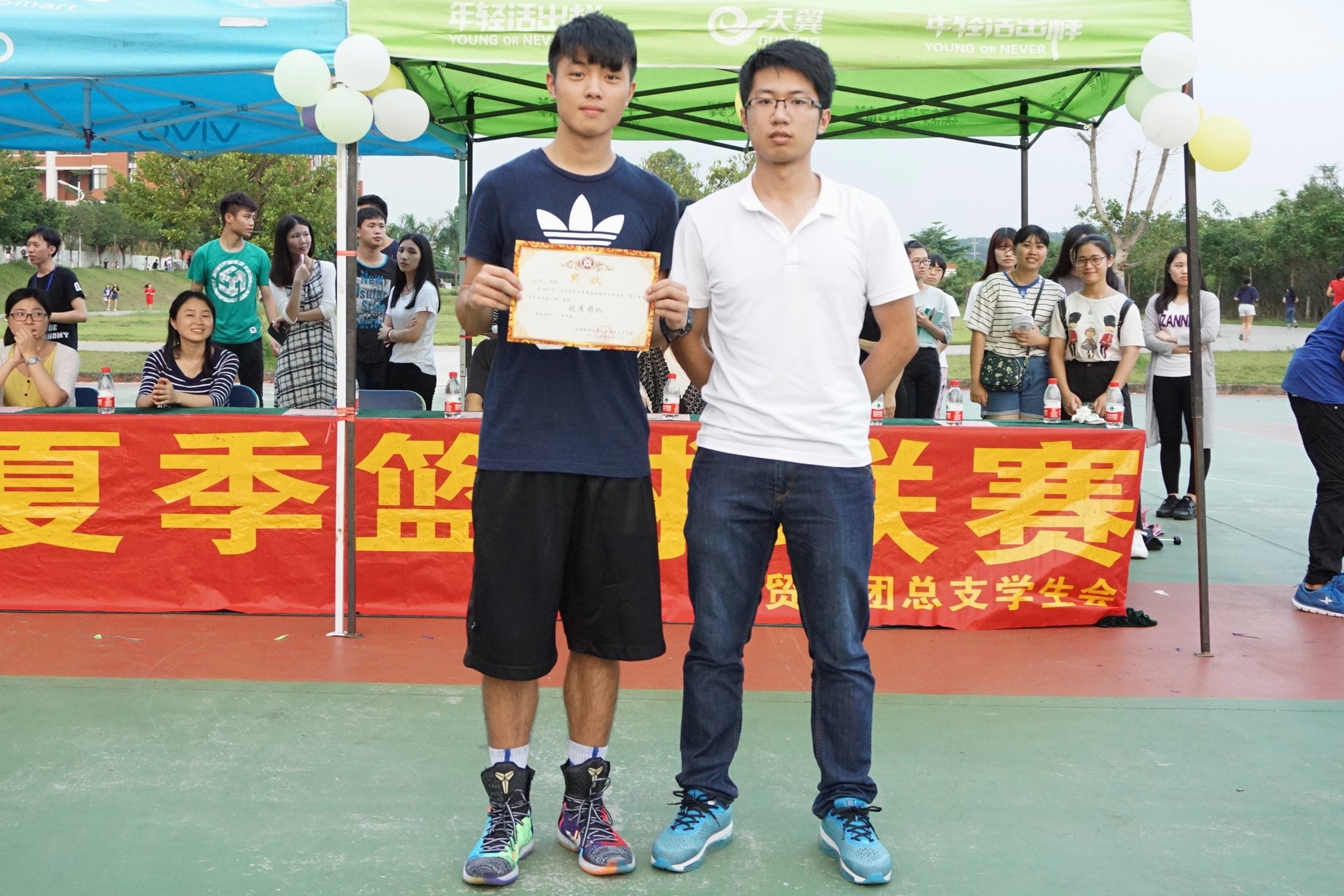 2016年6月2日下午4:30分,接近两个月的夏季篮球联赛终于在六一儿童节这天迎来了决赛。14国商1班和15电商2班在创新楼前9号场带来一场精彩的争冠对决。信息系团总支书记庄泽森、机电系团总支书记王秋茹、国贸系团总支书记吴仕坚以及我系各专业辅导员出席本次决赛暨闭幕式。