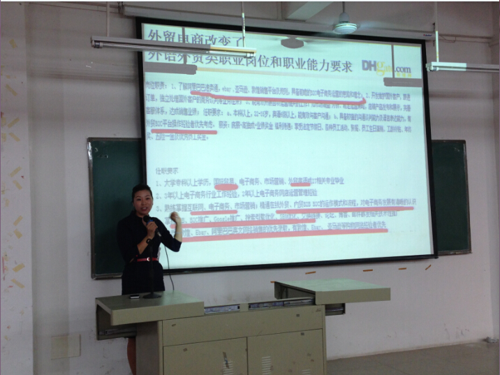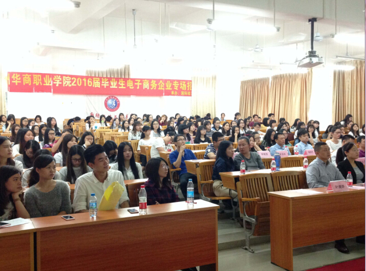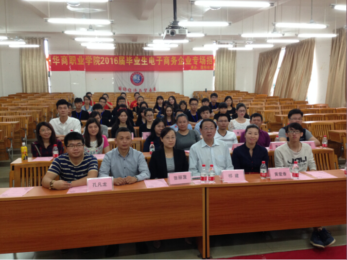 20151124日下午230分,我系举办的电子商务企业宣讲会在博学楼C101举行,随后在博学楼BC大厅进行电子商务企业专场招聘会,前来招聘的企业代表有:广州市伊洛汉网络科技有限公司黄爱香总经理,广州怡锋商贸发展有限公司、广州市威卡诺塑料制品有限公司、以及其他企业经理代表,我系主任祁建、副主任张丽菠、学工助理孔凡龙以及13级辅导员和电商专业教师参加了宣讲会。