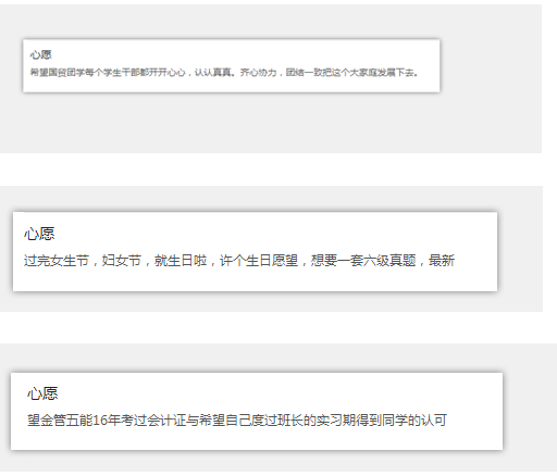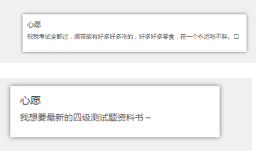 活动期间,女生们可以把自己的心愿写在心愿墙上,当然,也可以在心愿墙上写下对朋友的祝福。事后我们将对心愿墙上的心愿进行筛选,选取切合实际的愿望尽力地去帮她们实现自己的小心愿。她们的心愿有“四六级考试真题”、“糖果零食”等,我系学生会安排工作人员前往宿舍进行派送。