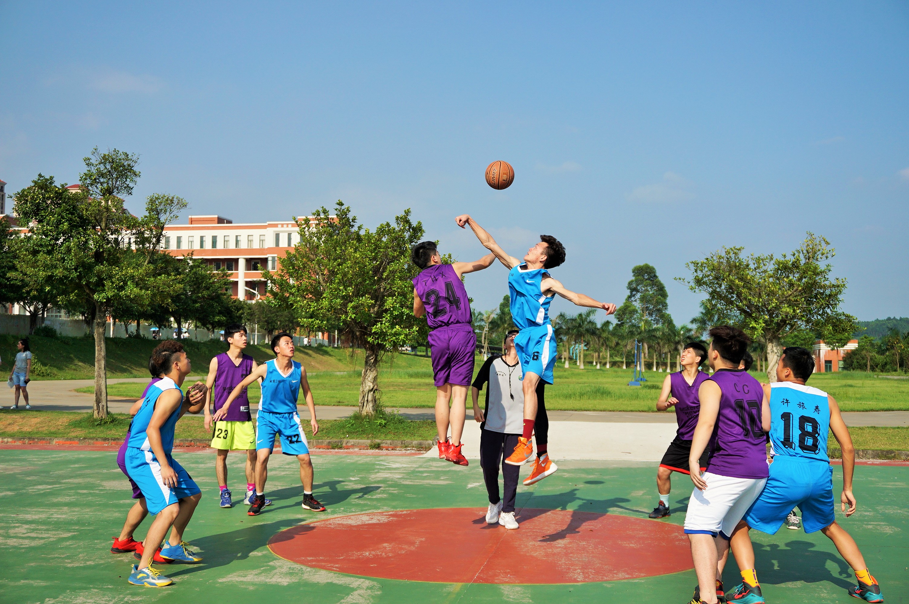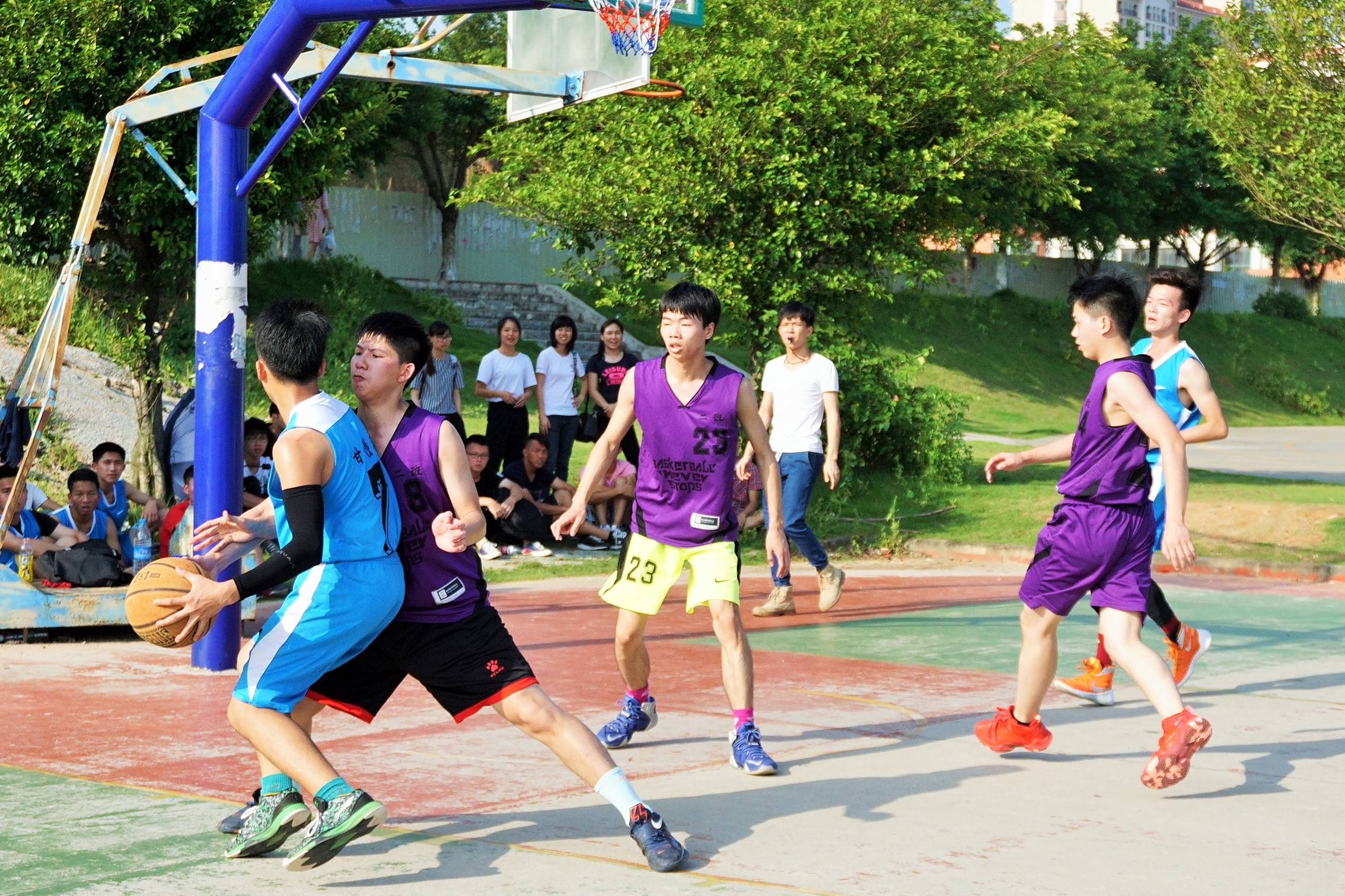 一路过关斩将到四强争夺的这八个班级,都是实力不凡、势不可挡的。一次次的运球、抢球只为拉开差距,我们看到女生打起球也不逊色于男生。台上一分钟,台下十年功,每队在这一个多月里都付出辛勤的训练与努力,每晚的球场几乎都能看到他们训练的身影。每场比赛他们竭尽全力、团结一致,为了班级荣誉而战,这就是比赛的精神。