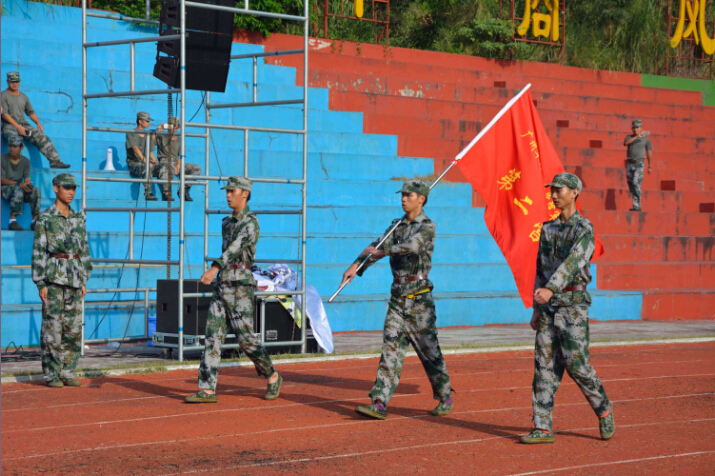 最后,学院院长陈达美为军训团授旗,标志着我校2015级新生军训正式拉开序幕。