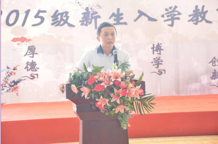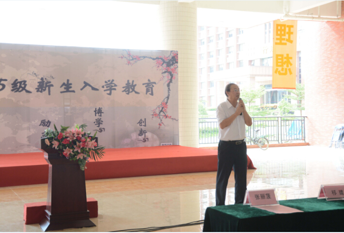9月16日,我系在启智楼二楼大厅举行新生入学教育暨师生见面会。学院党委书记黄桂标、国贸系主任祁建、系副主任沙园松、系副主任张丽菠、评估专员潘虹、商务英语教研室主任杨思柳、大学英语教研室主任龙玲珑、金石教授、罗序梅教授、教师代表郑杰、系党总支书记孔凡龙、团总支书记吴仕坚、辅导员石笑丽、辅导员崔传玺出席本次会议。