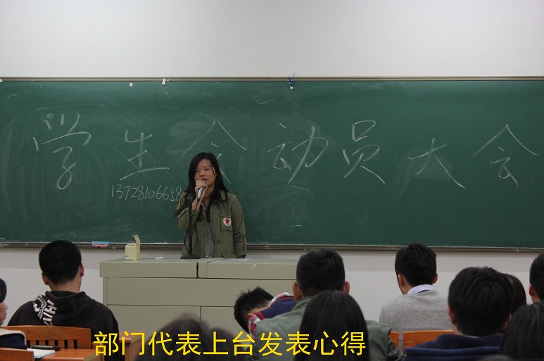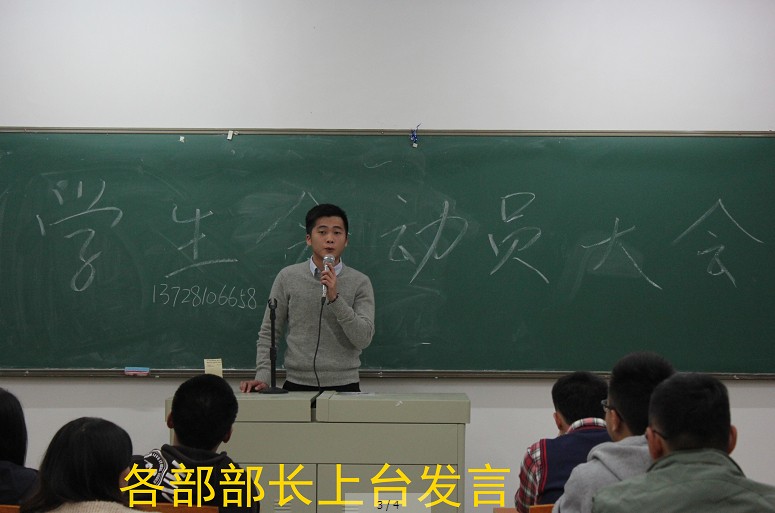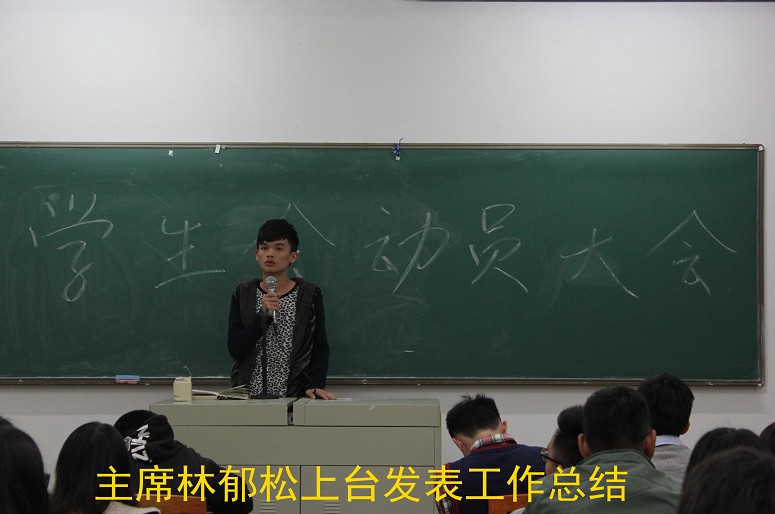 伊始,主席林郁松上台发表讲话,介绍了各部门的部长与新增部门纪检部,简要阐述纪检部的主要工作和管辖范围。紧接着各部门的干事进行自我介绍并讲述进入学生会的感悟。最后,主席林郁松交代各部门今后的工作方向,以及表达了对各部门的寄望。