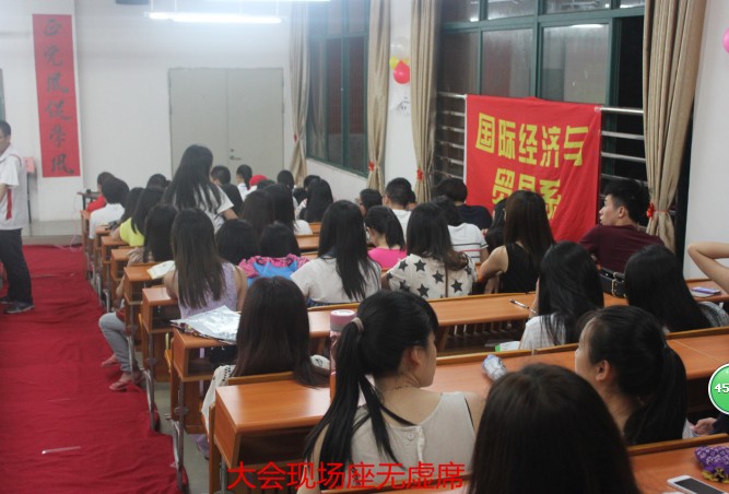 为促进党章知识的学习与交流,由思政部党支部主办、工商系和国贸系承办,以“学党章,明党纪;正党风,促党风”为主题的群众路线交流会在博学楼C101隆重举行。出席本次大会的嘉宾有院党委黄桂标书记、基础与思政部王红萍主任,国贸系主任祁建老师,工商管理系副主任蓝群辉老师,国贸系团总支书记于晓林老师,工商管理系团总支书记唐家进老师,以及国际经济与贸系,工商管理系的各位辅导员老师。