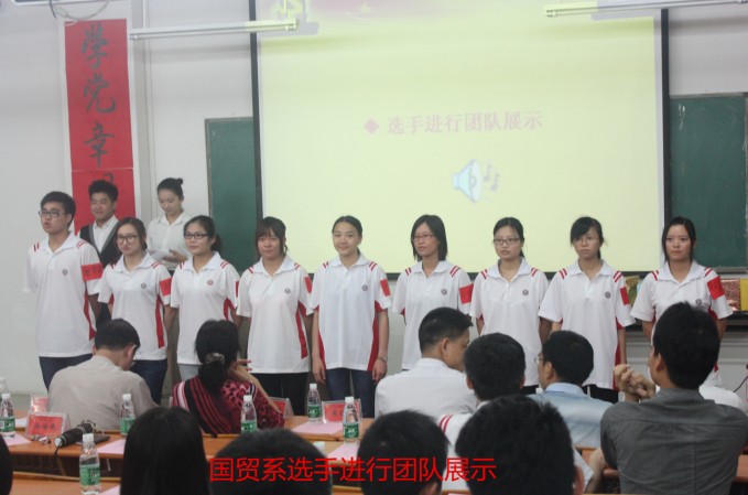 随着主持人开场白的结束,我系与工商系竞赛选手展开了一场激烈的较量,各不相让。虽我系在“畅所欲言”环节拔得头筹,五个竞赛环节结束后,但还是由工商系获得优胜。最后王红萍主任发表致辞,黄桂标书记为获奖系别颁发证书以资鼓励。