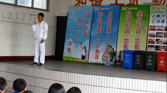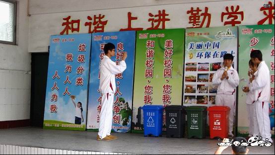 当天上午,我们的志愿者不畏天气的原因仍赶到现场,他们身穿白色校服,为当地工作人员以及该校小学生上演了一则以环保垃圾分类的宣传小品,该小品以4个垃圾箱的颜色命名为“红蓝灰绿”。让当地小朋友更好的理解垃圾是如何分类、以及垃圾分类的重要性。他们的热心以及积极性得到了当地工作人员的赞扬。