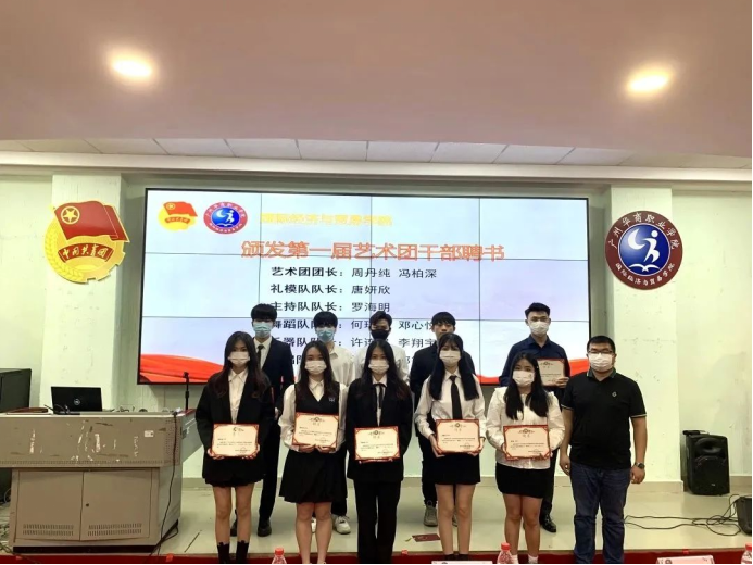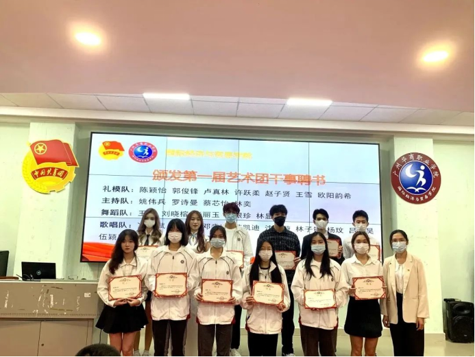 (由党总支吴仕坚副书记颁发团委学生会第一届艺术团干部聘书)