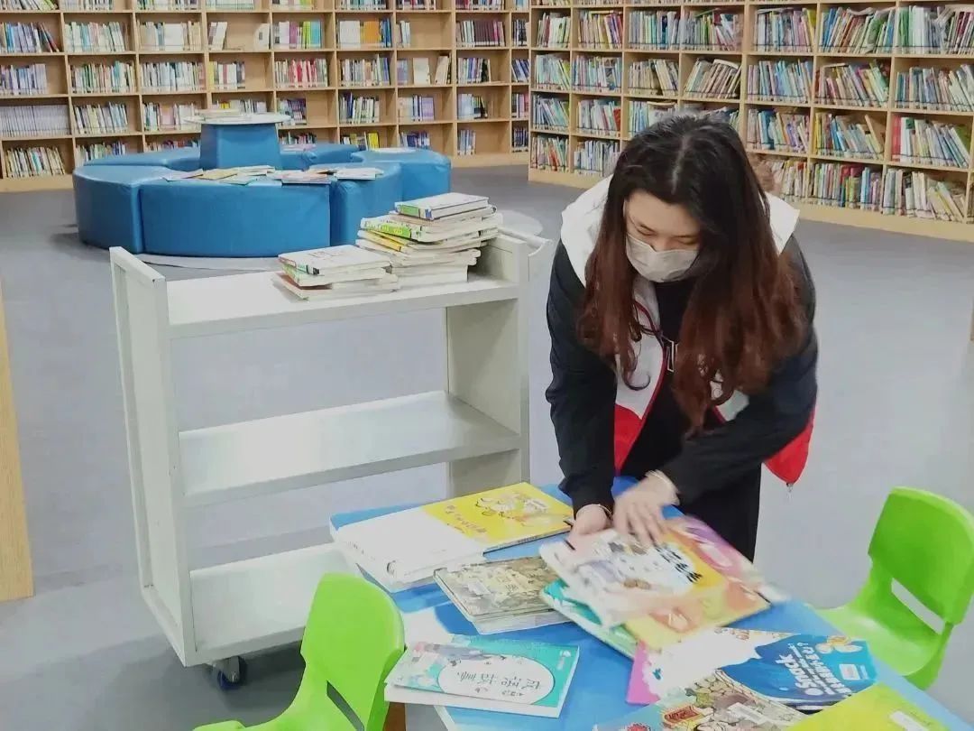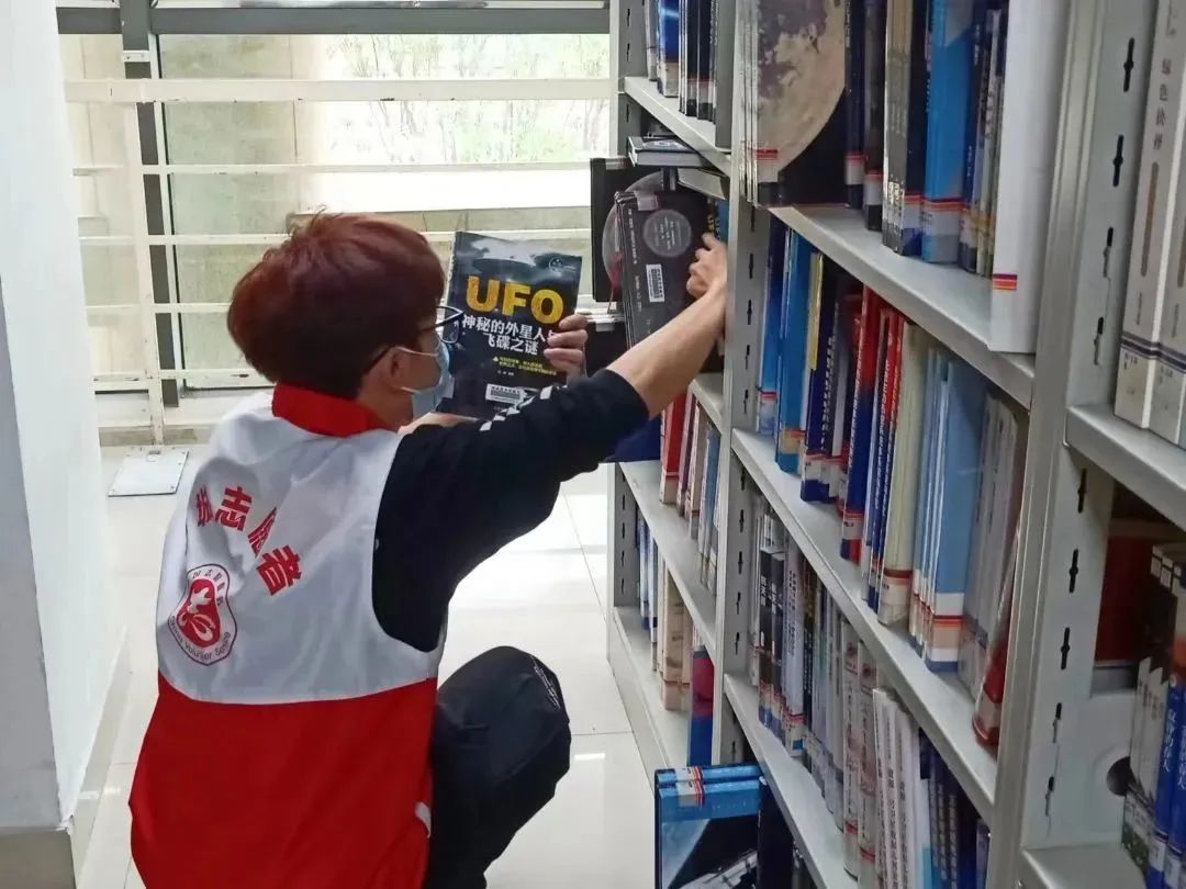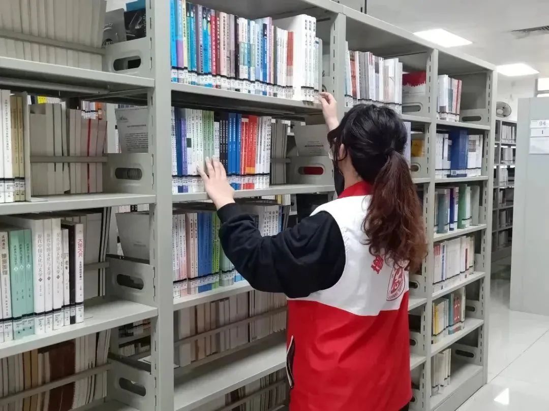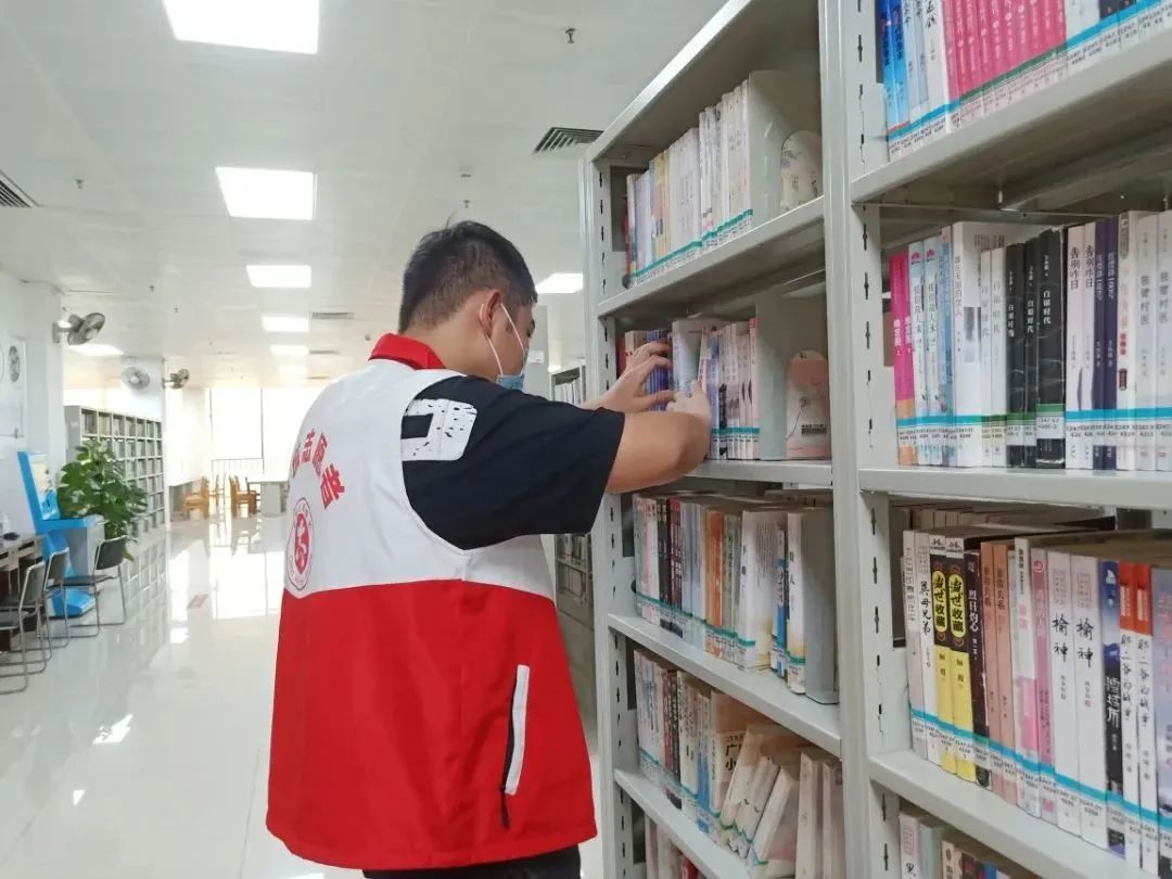 在浓浓的书卷气息中,他们与工作人员配合默契,齐心协力,将杂乱的书籍都摆放的整整齐齐,使其更方便读者们查找借阅。