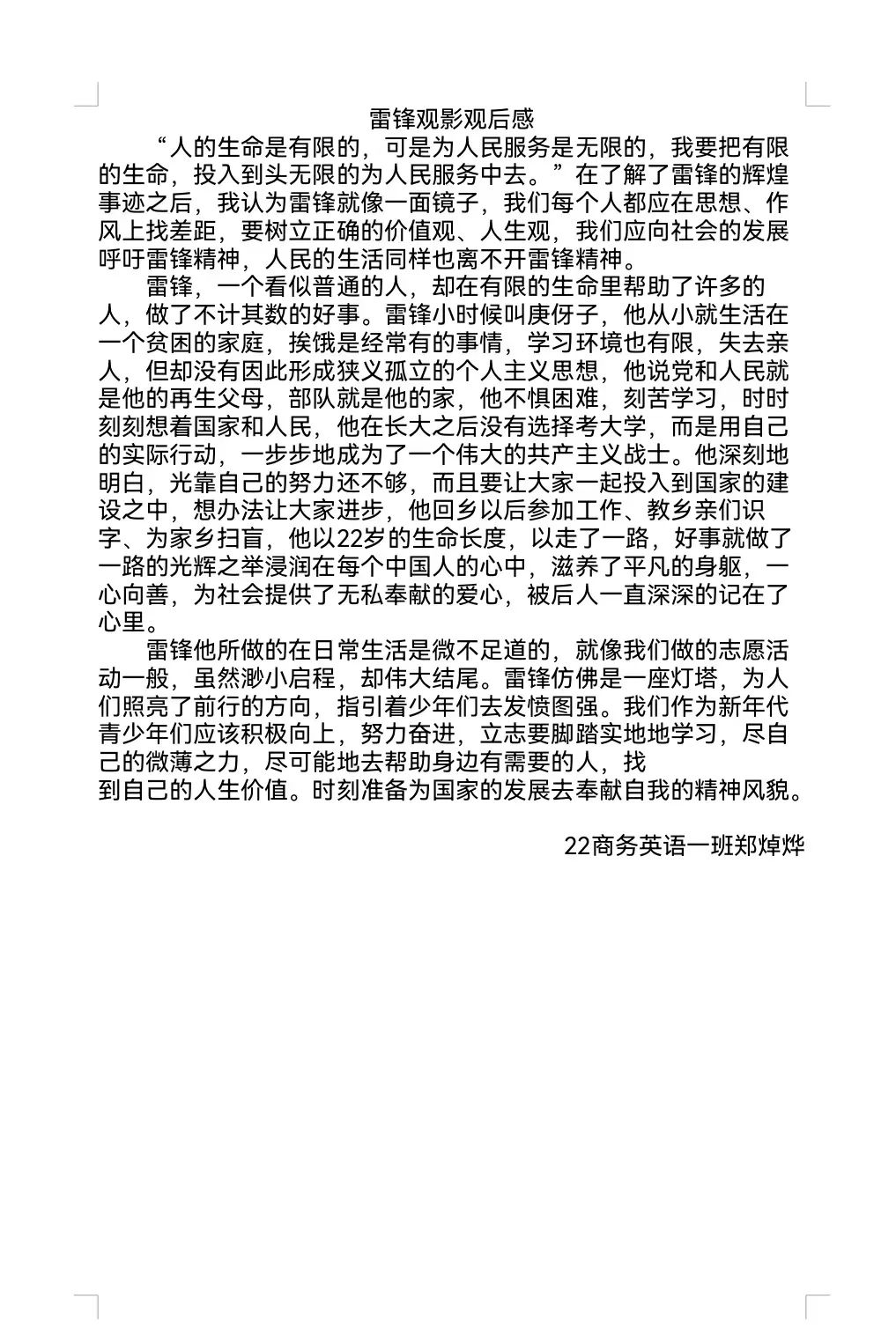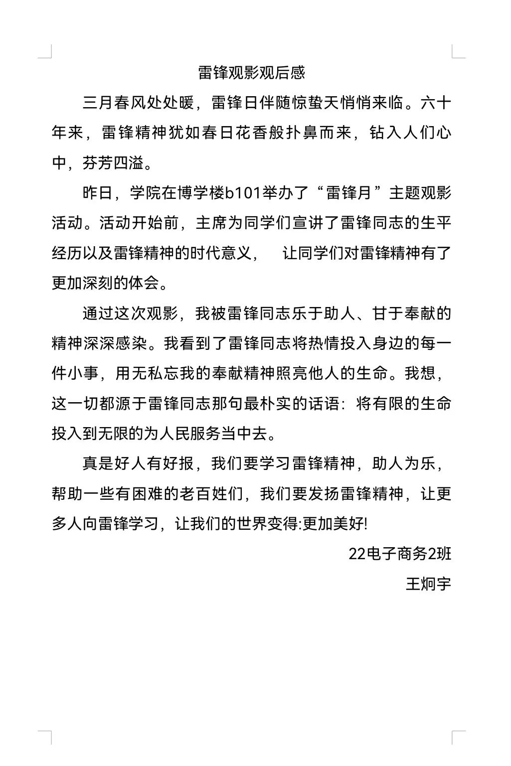 雷锋精神是为共产主义而 奋斗的无私奉献的精神。为学习领会党的十八大以来习近平总书记对弘扬雷锋精神作出的一系列重要论述,将学雷锋在大学生中蔚然成风,让学雷锋活动融入日常、化作经常,国际经济与贸易学院于2023年3月16日在博B101教室开展学雷锋观影活动。