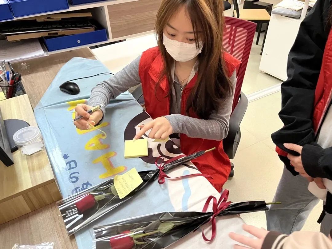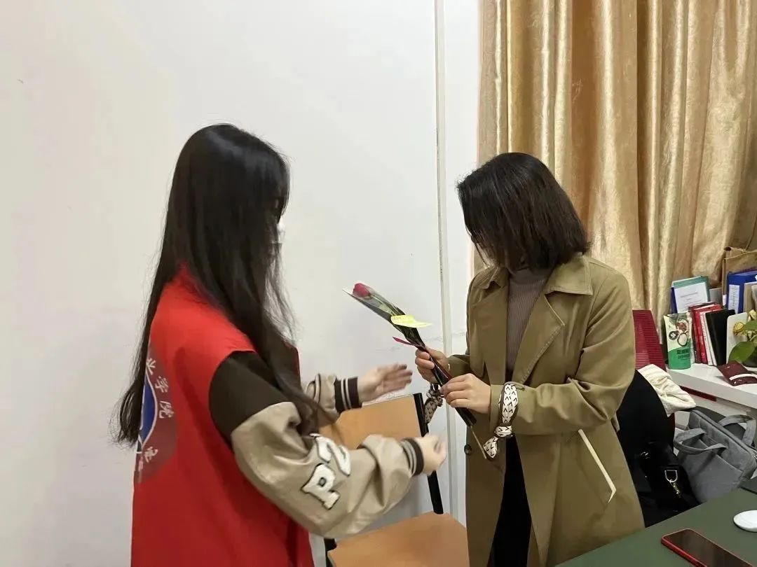 3月7日上午,团委学生会工作人员备好鲜艳的红色玫瑰花,贴上一张张节日祝贺与美好祝福,感谢广大女教师同胞在岗位中尽职尽责,无私奉献,辛勤付出。