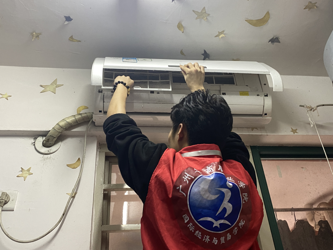 一位志愿者,虽然只是小小的个体,但是他们却充满力量,尽心为师生们办好事、做实事。2023年3月29日中午12时,国际经济与贸易学院组织志愿者们以满足同学们实际需求为导向,前往宿舍区域提供空调清洗服务。