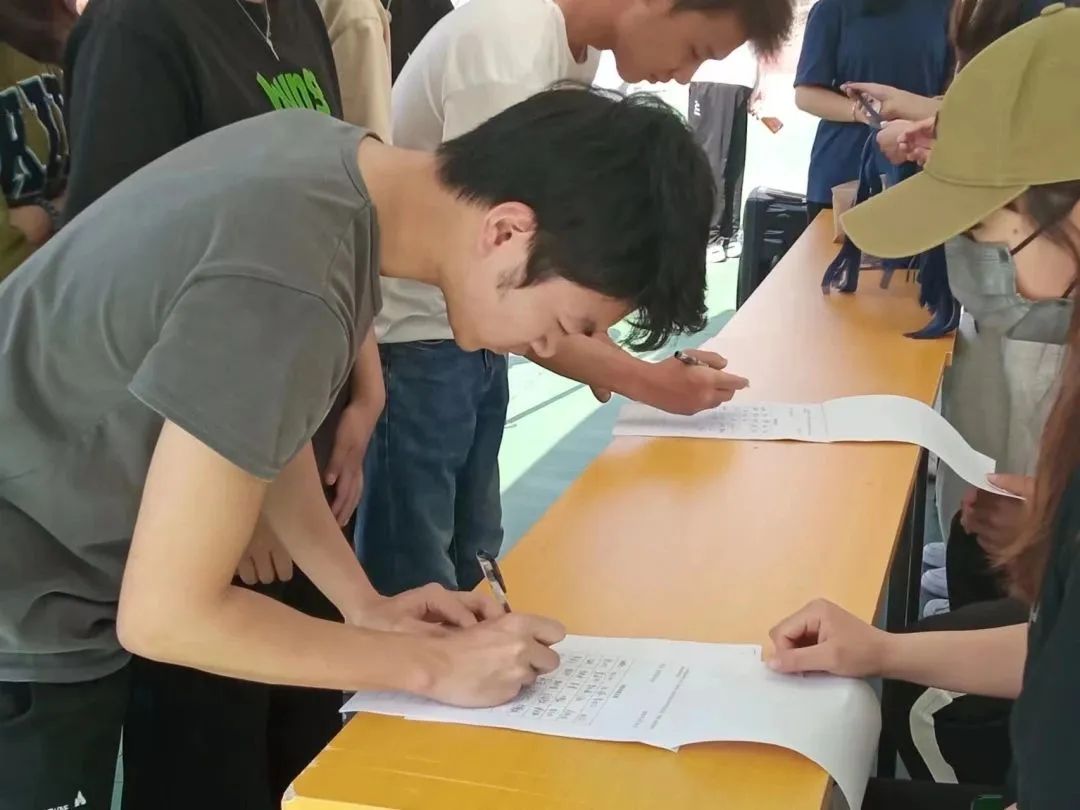 (运动员有序签到、领取丝带)