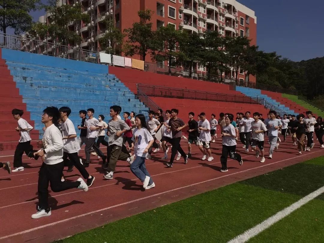 大家迈着稳健而轻快的步伐摆臂、跨步同学们彼此帮助,互相鼓励用奔跑激昂青春用速度超越极限