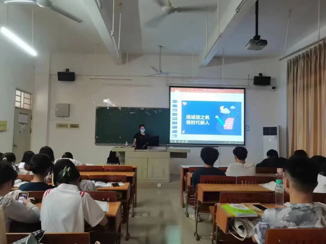 各班班主任深入到课室,给各位同学们讲解了“诚信的含义及意义”、“大学生失信行为”、“大学生应如何保持诚信”,教导同学们要诚实守信,扎实掌握知识和技能,适应时代和社会的需要,努力上进,发挥大学生的引领性,营造社会诚信之风。