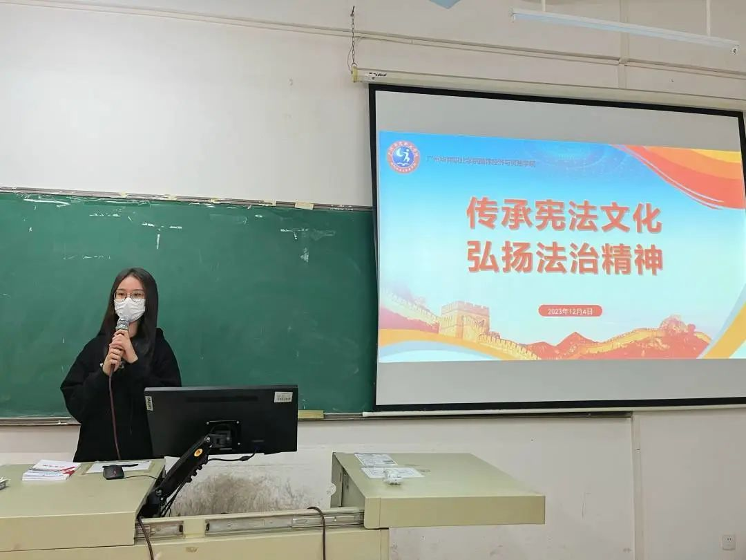 今年是第10个“国家宪法日”。为了让宪法走进校园,向学生普及宪法知识,让同学们了解宪法的重要性。国际经济与贸易学院于2023年12月4日下午17:50在博C406组织开展了“传承宪法文化,弘扬法治精神”主题讲座宣传活动。