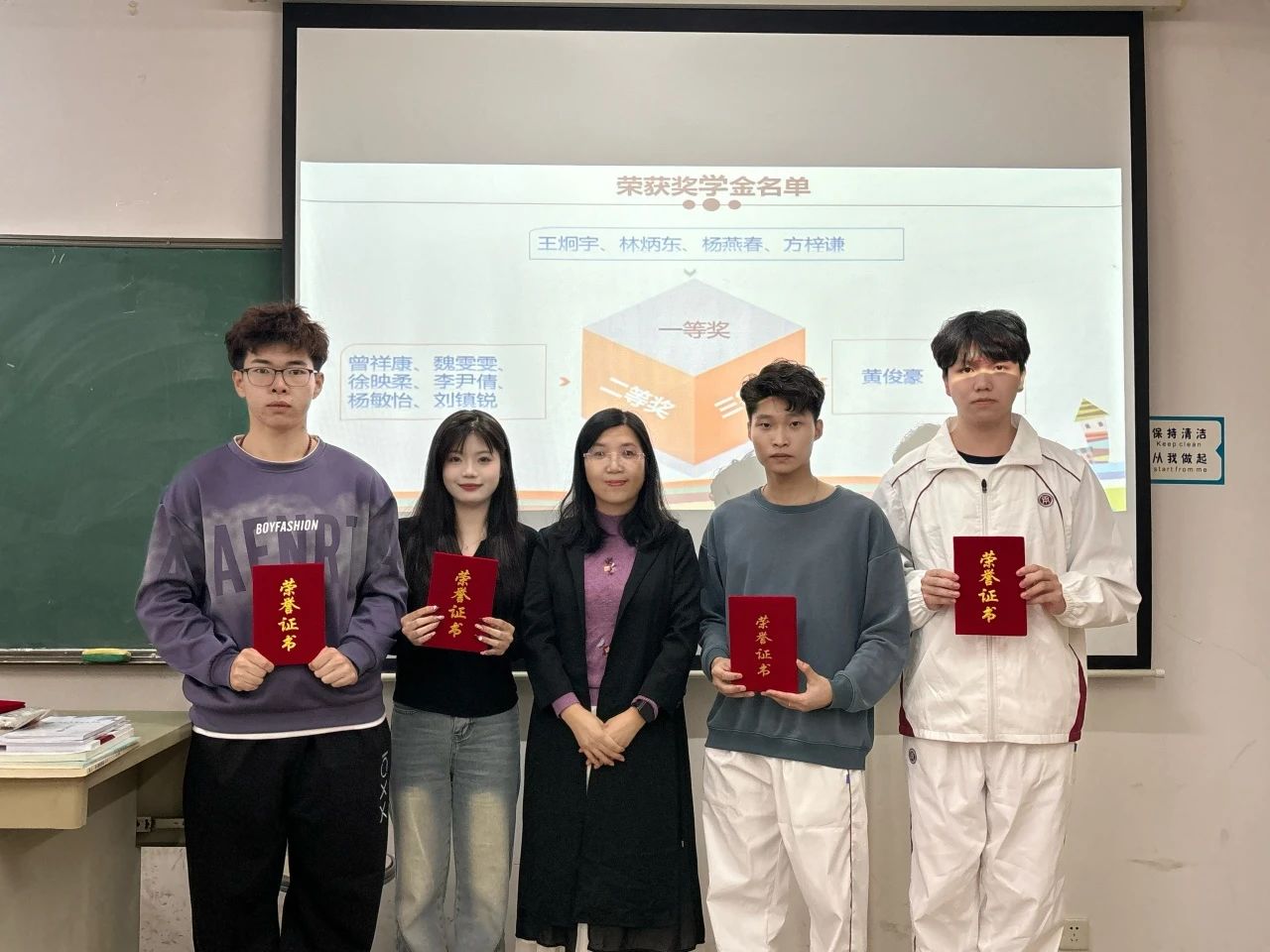 双喜临门,荣誉成双!在今天的班级晚会上,不仅颁发了学习标兵,同时也为上学年校内奖学金获得者举行了隆重的颁奖仪式。他们的成就不仅是个人努力的见证,也是班级的荣耀。