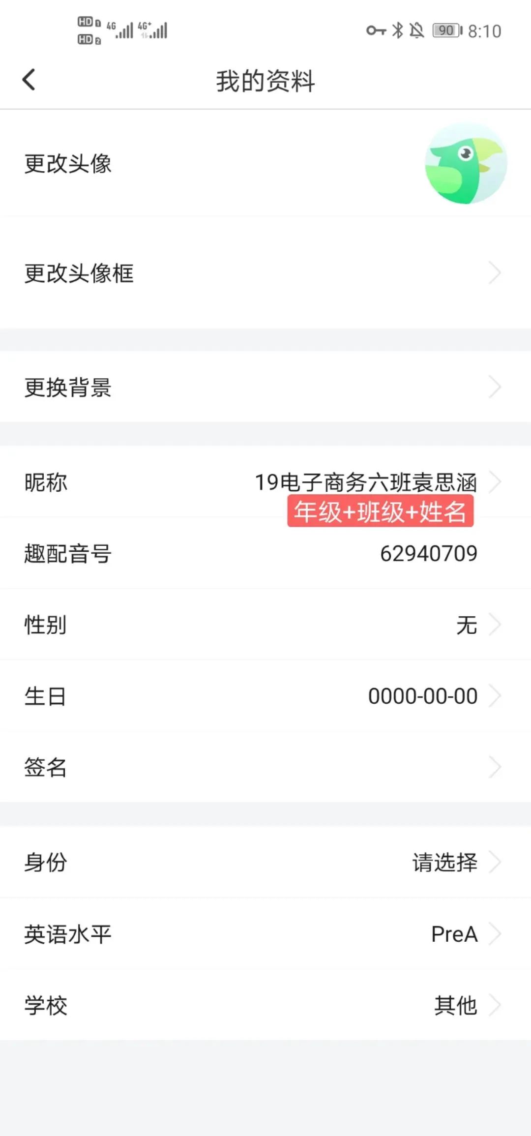 注意️:登录账户姓名必须为真实姓名➕班级 如下图所示