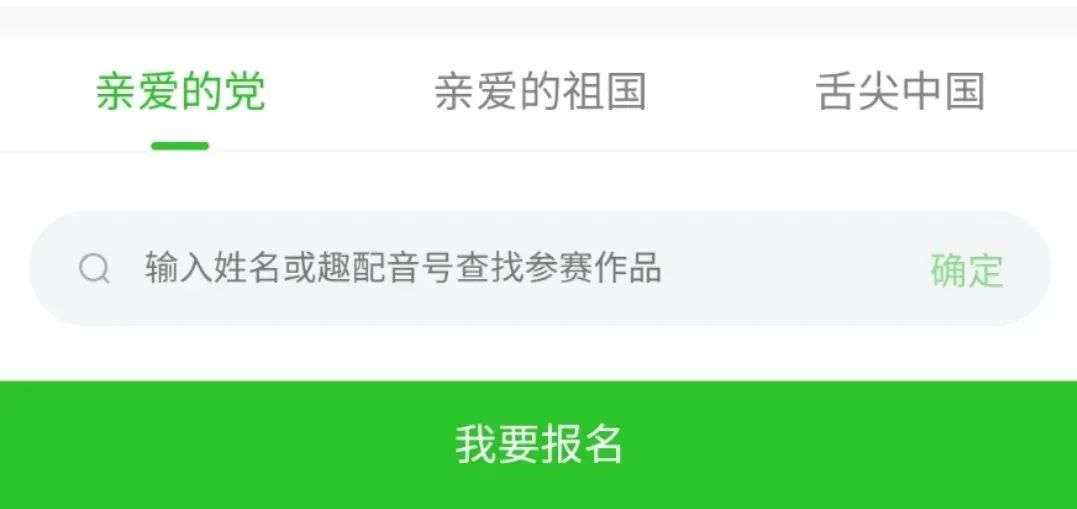 (4)参赛选手可在“亲爱的祖国”、“亲爱的党”、“舌尖上的中国”组别中挑选(选择后不可更改),选择感兴趣的视频进行配音,在平台上直接提交作品即可。