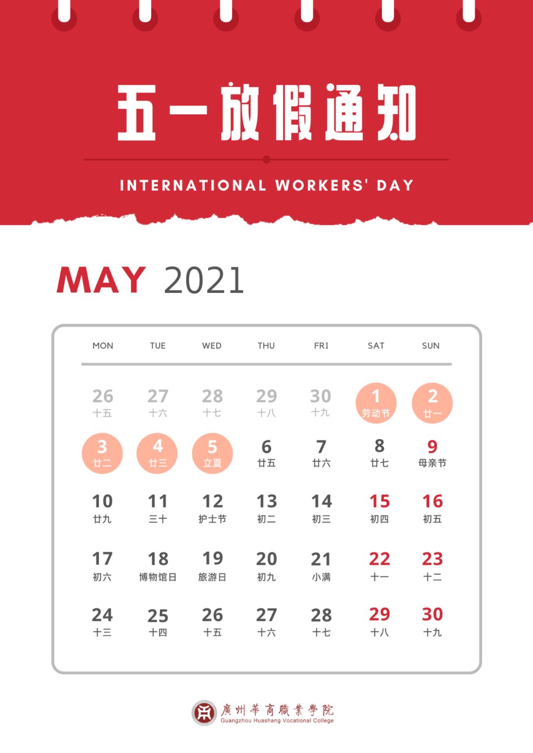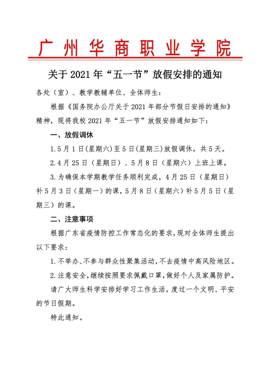5月1日-5月5日放假(共5天)