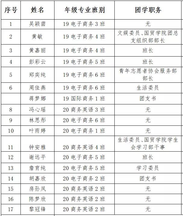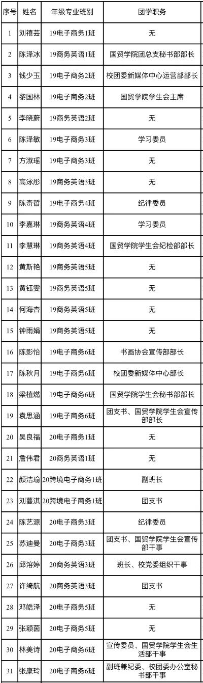 国际经济与贸易学院2020-2021学年度“五四”表彰评选结果名单公示