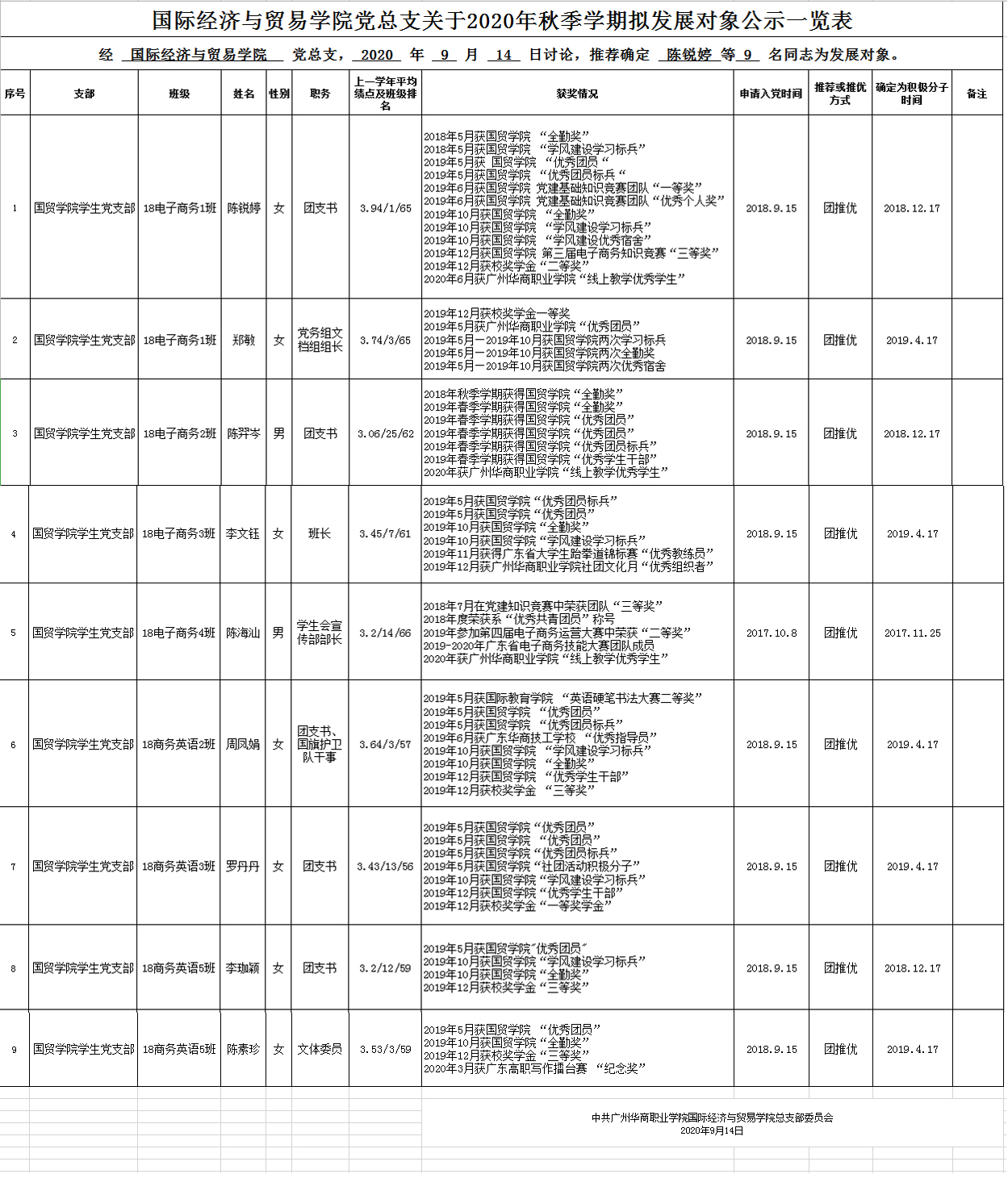 附件:国际经济与贸易学院党总支关于2020年秋季学期拟发展对象公示一览表