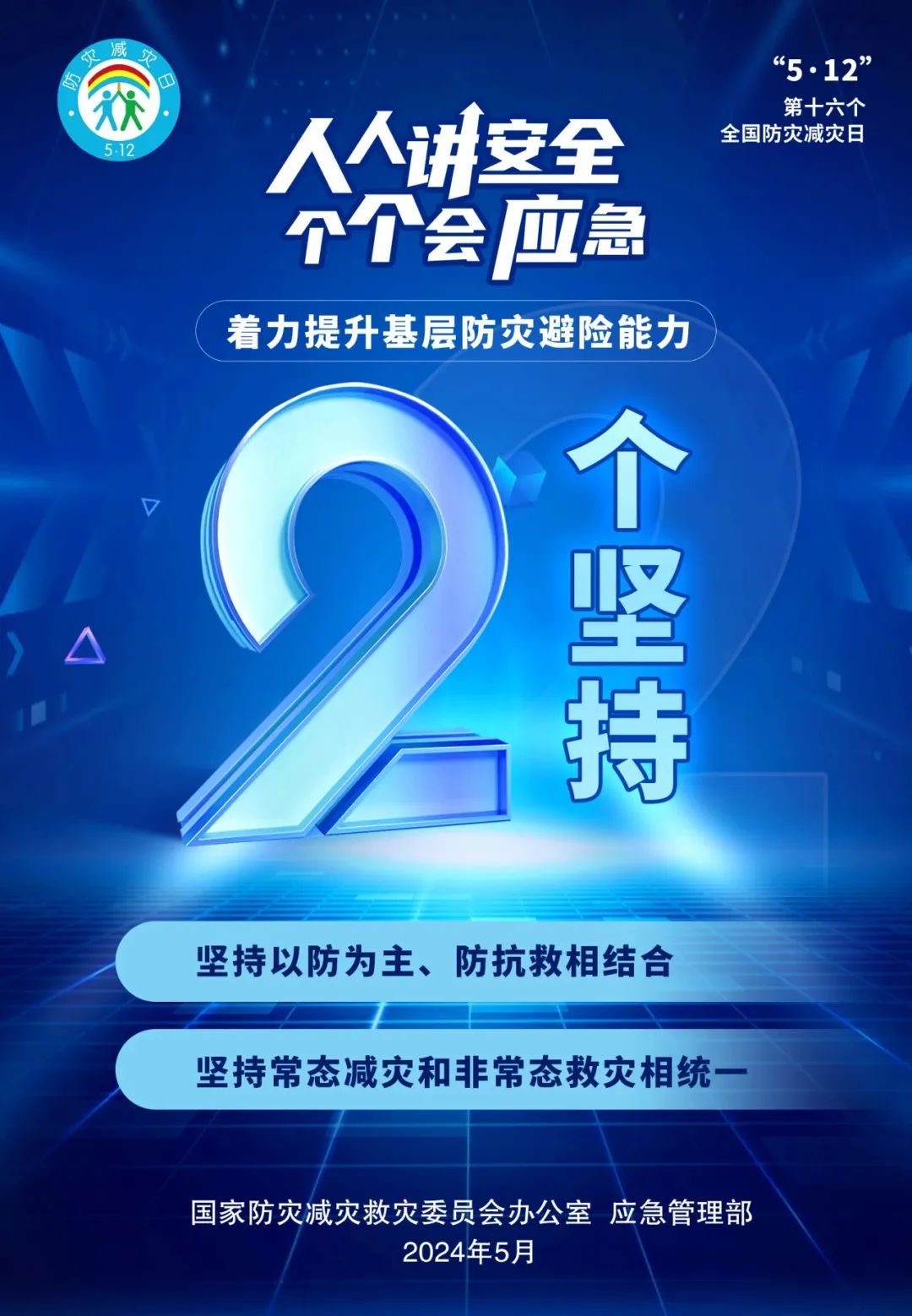 今年5月12日,是我国第十六个“全国防灾减灾日”,主题为“人人讲安全、个个会应急——着力提升基层防灾避险能力”。同时,5月11日至17日正值防灾减灾宣传周,让我们一起深入学习以下重要知识。