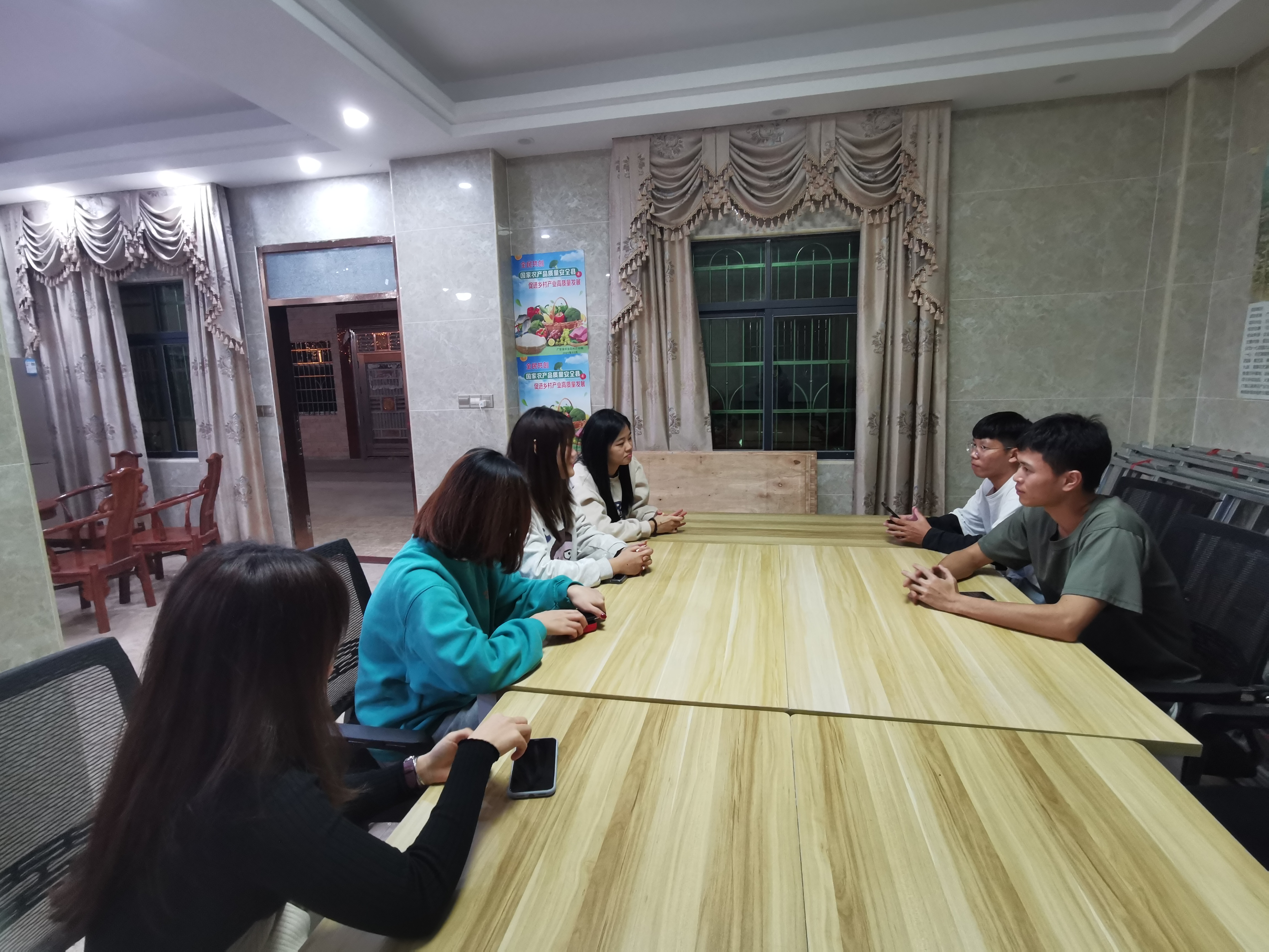 晚上九点,李倩老师召集大家在房间一楼大厅开会,做次日工作安排,首先,因为人员有所变动,所以重新进行分组;其次,讲了安全问题,人员离开要进行报备,外出注意安全;第三,次日工作安排,完成调查问卷和产品的拍照、产品介绍及推广文案,小组之间要相互帮忙,相互支持。然后,陈月老师就宣传问题进行了阐述,对新闻稿及照片拍摄的要求都做了详细要求。会后,各小组分别就刚刚的会议内容召开了小组会议,进行详细的工作安排。