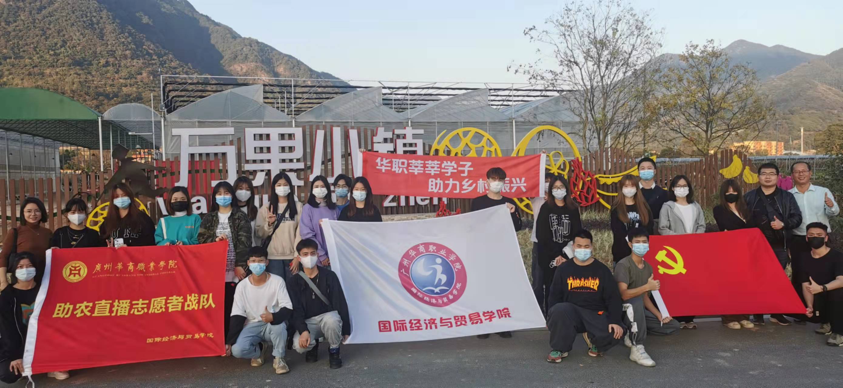 2022年1月4日下午,国际经济与贸易学院党总支副书记吴仕坚带领廖卓艺、尹柯、陈利、李倩、陈月老师和21名学生志愿者前往增城区派潭万果小镇,正式开启助农直播社会实践服务。
