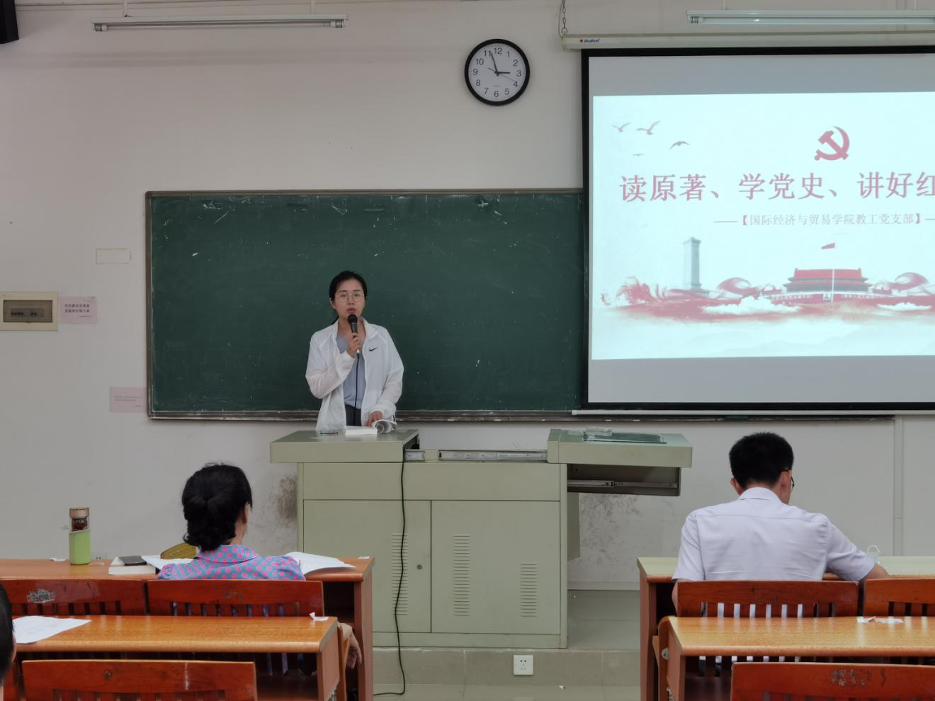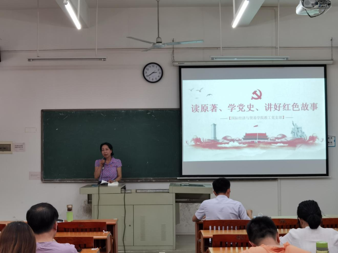 梁悦院长、黄泽栋副书记、张丽菠副院长、教工党支部书记余锋老师分别以《中国共产党简史》原著篇章为内容,用饱满的感情、铿锵有力的气势分享了一篇篇主题鲜明、富有感染力的红色经典故事。
