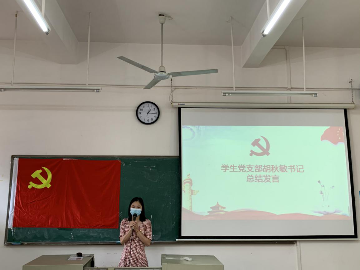 最后,国际经济与贸易学院学生党支部胡秋敏书记总结发言,她表示希望在座的34名积极分子通过此次总结自荐,寻找自身不足,学习他人优秀之处,继续以党员标准严格要求自己,争取早日成为一名中国共产党员。