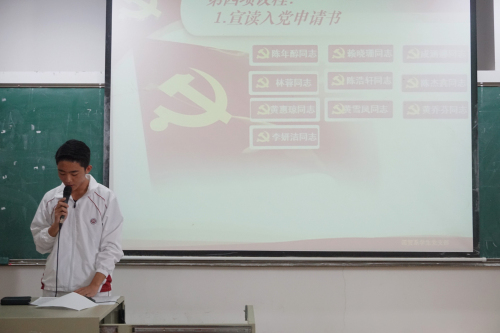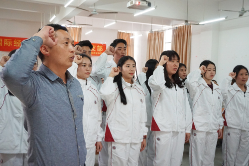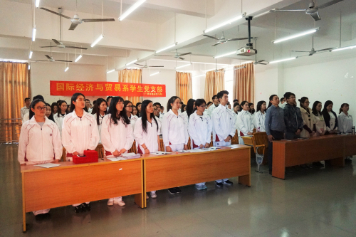 大会伊始,全员起立,奏唱国际歌。本次大会采取举手投票产生工作人员,就林萍、颜碧婷、曾宪华三名预备党员按期转正问题及接收陈年醇、林蓉等十名发展对象为预备党员问题进行讨论。在场的党支部成员积极发言,既肯定了他们的成绩,也指出缺点和不足。紧接着,国贸系党支部书记余泳同志对党务小组及全体支部成员提出下一阶段工作要求。随后,国贸系党总支书记孔凡龙同志带领十三名同志重温入党誓词。