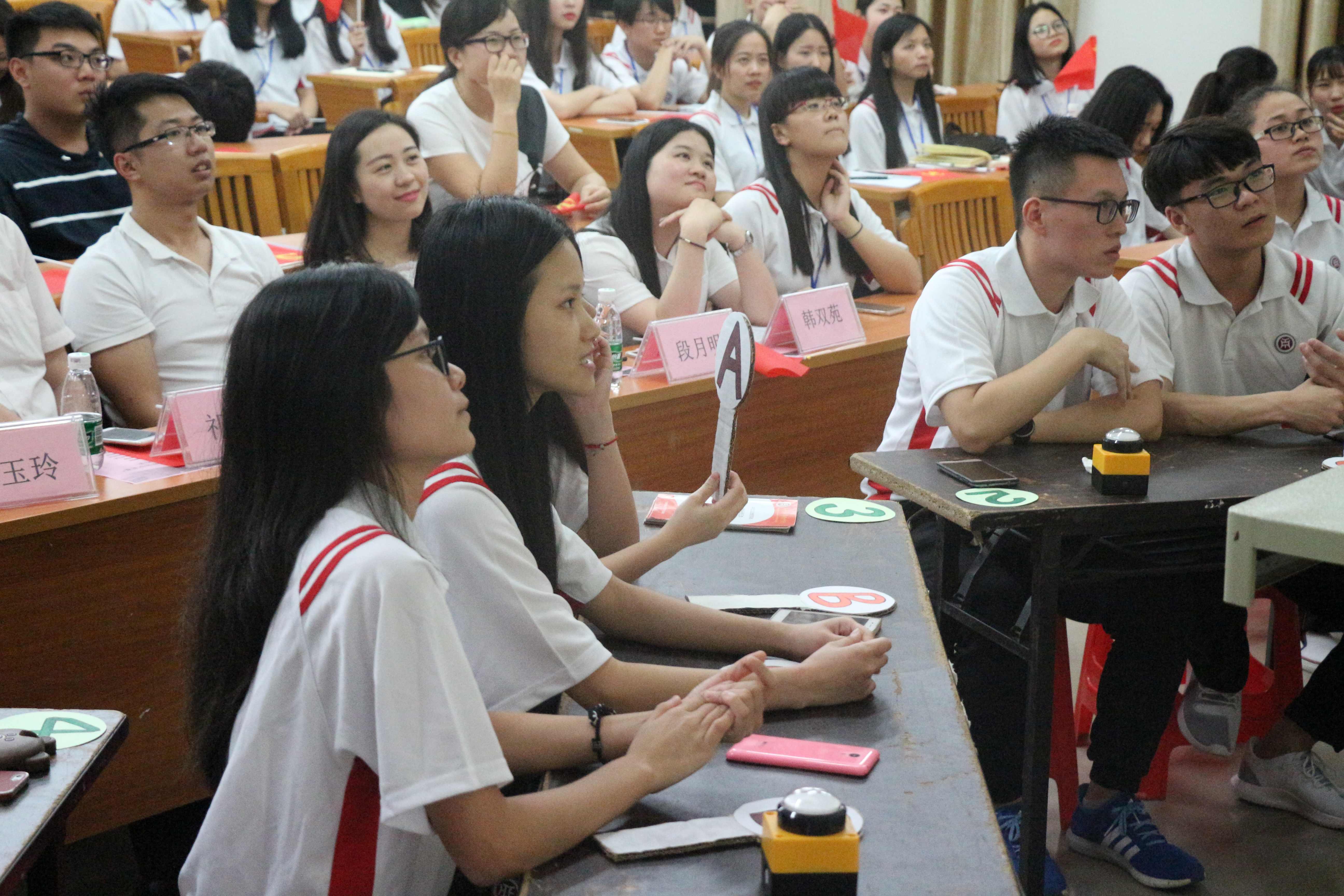 进入决赛的参赛选手分别是:15级国商2班、15级电商2班、15级商英1班、15级商英4班。本次决赛有必答题、抢答题、风险题三个环节。
