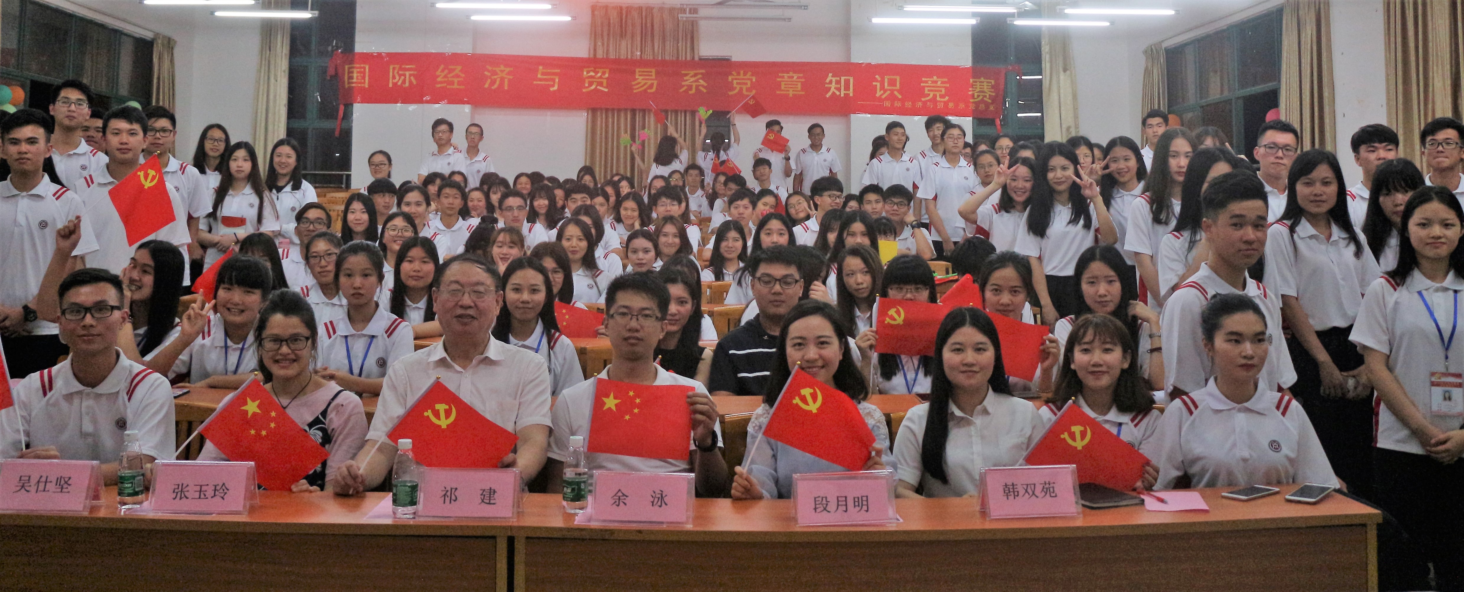 2017518日晚19点,国贸系党章知识竞赛决赛在博学楼C201举行。莅临现场的领导嘉宾有:国贸系祁建主任、教职工党支部书记张玉玲,学生党支部书记余泳、副书记韩双苑,以及教师党员黄雪芳老师、段月明老师等。